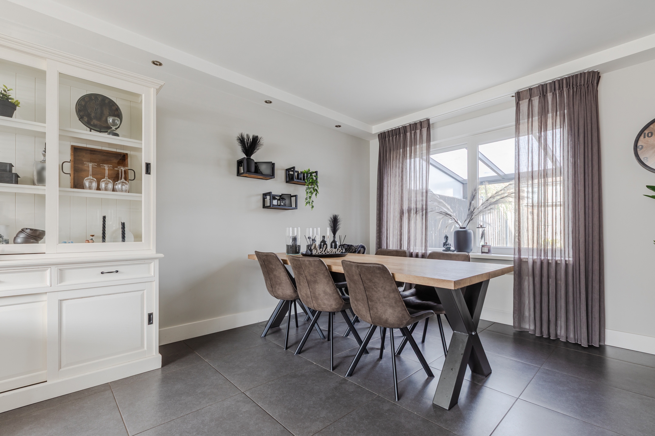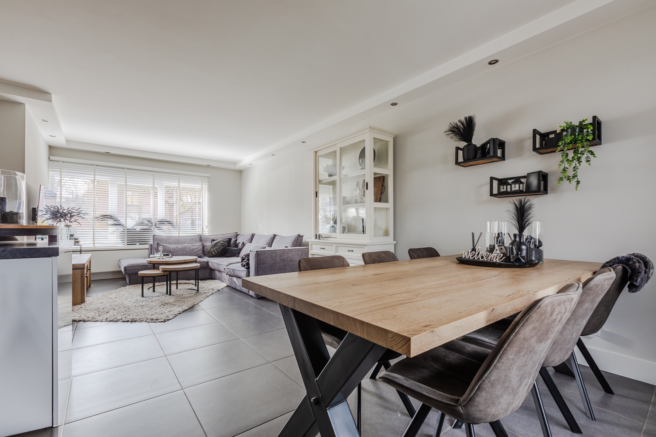 Door deze ruime woonkamer is er ook plek voor een grote eettafel.
