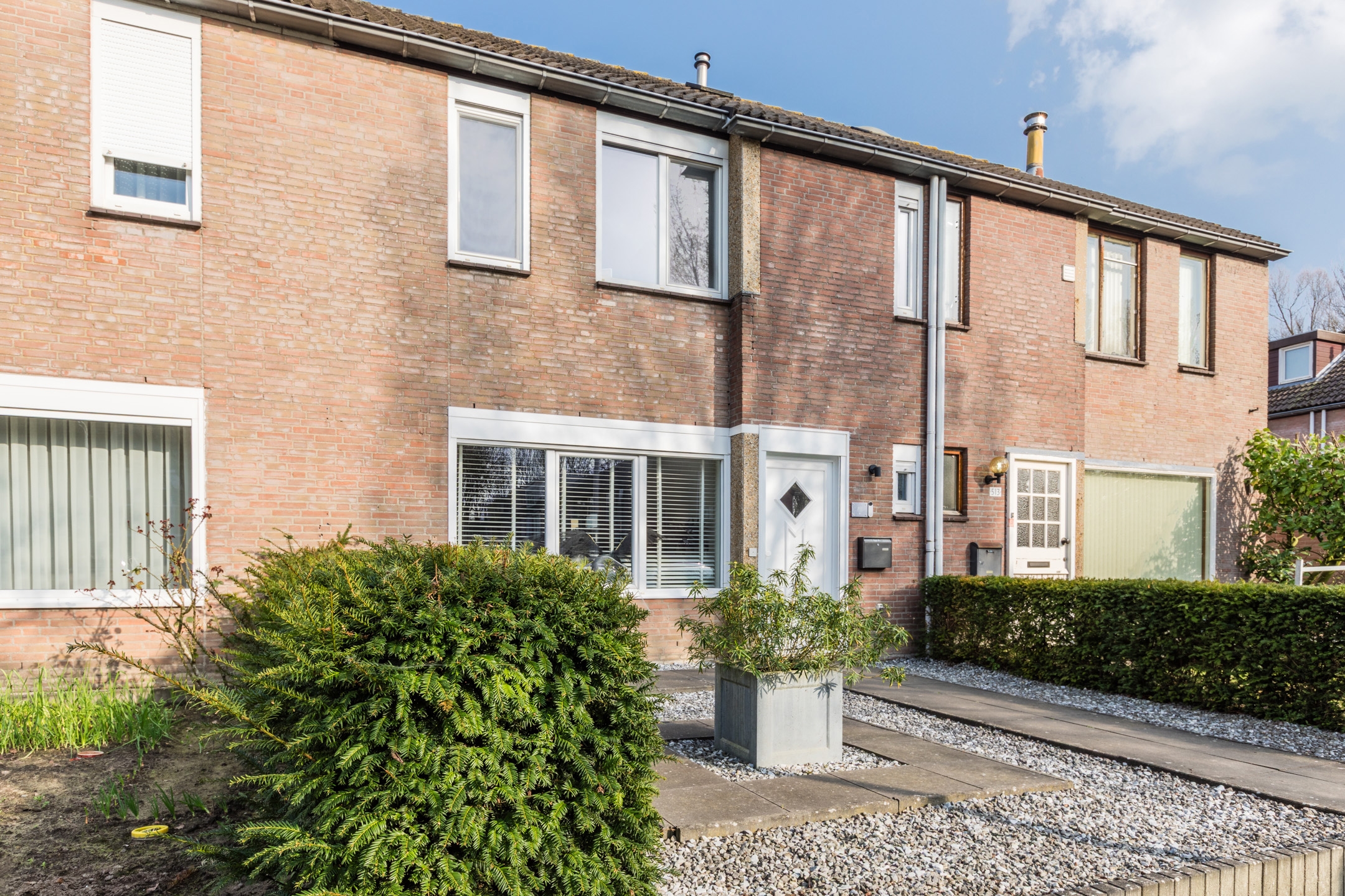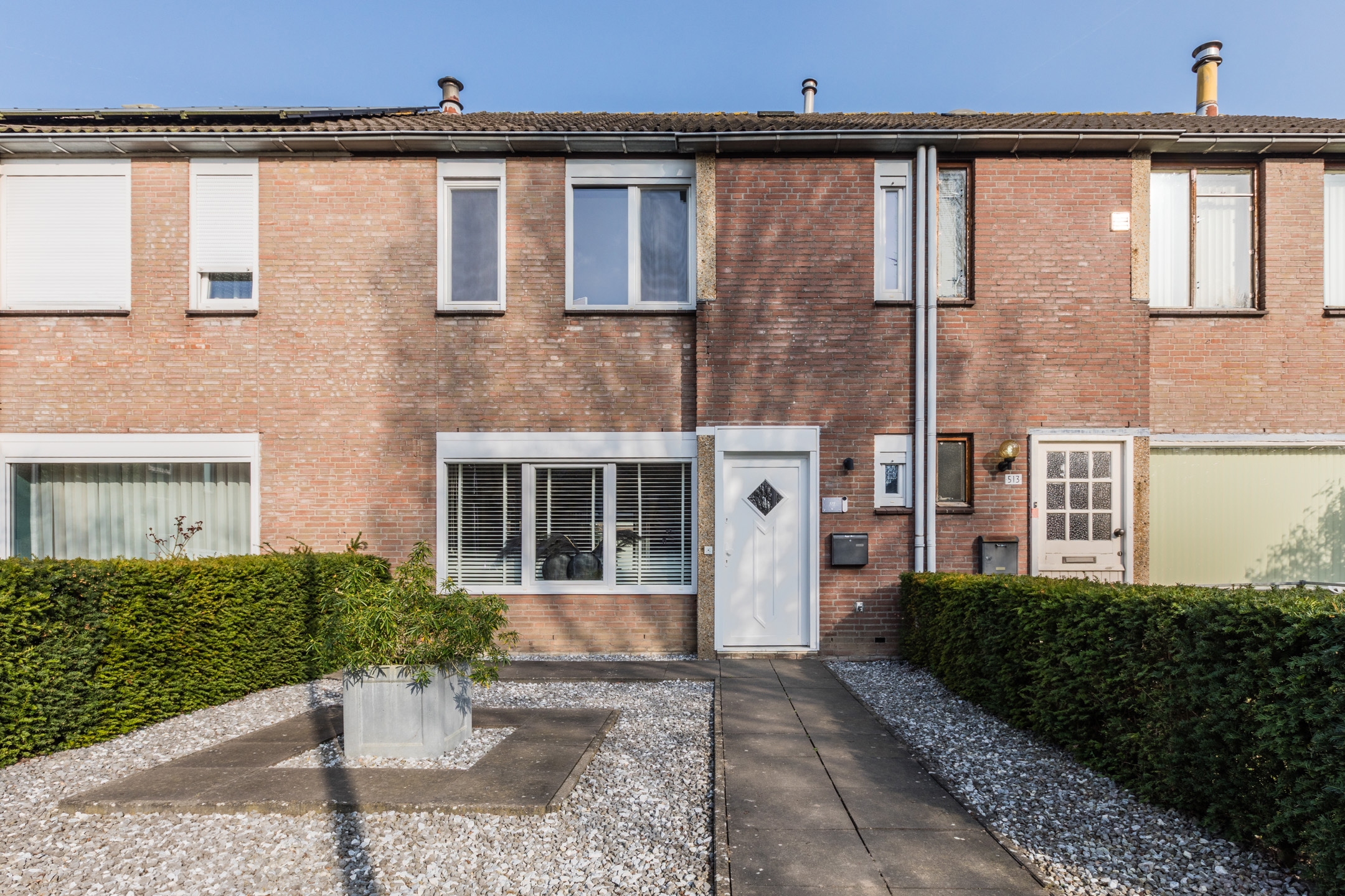 Voordat je de woning binnenkomt, ga je door de voortuin die uitstraalt hoe modern en goed onderhouden de woning van binnen is.