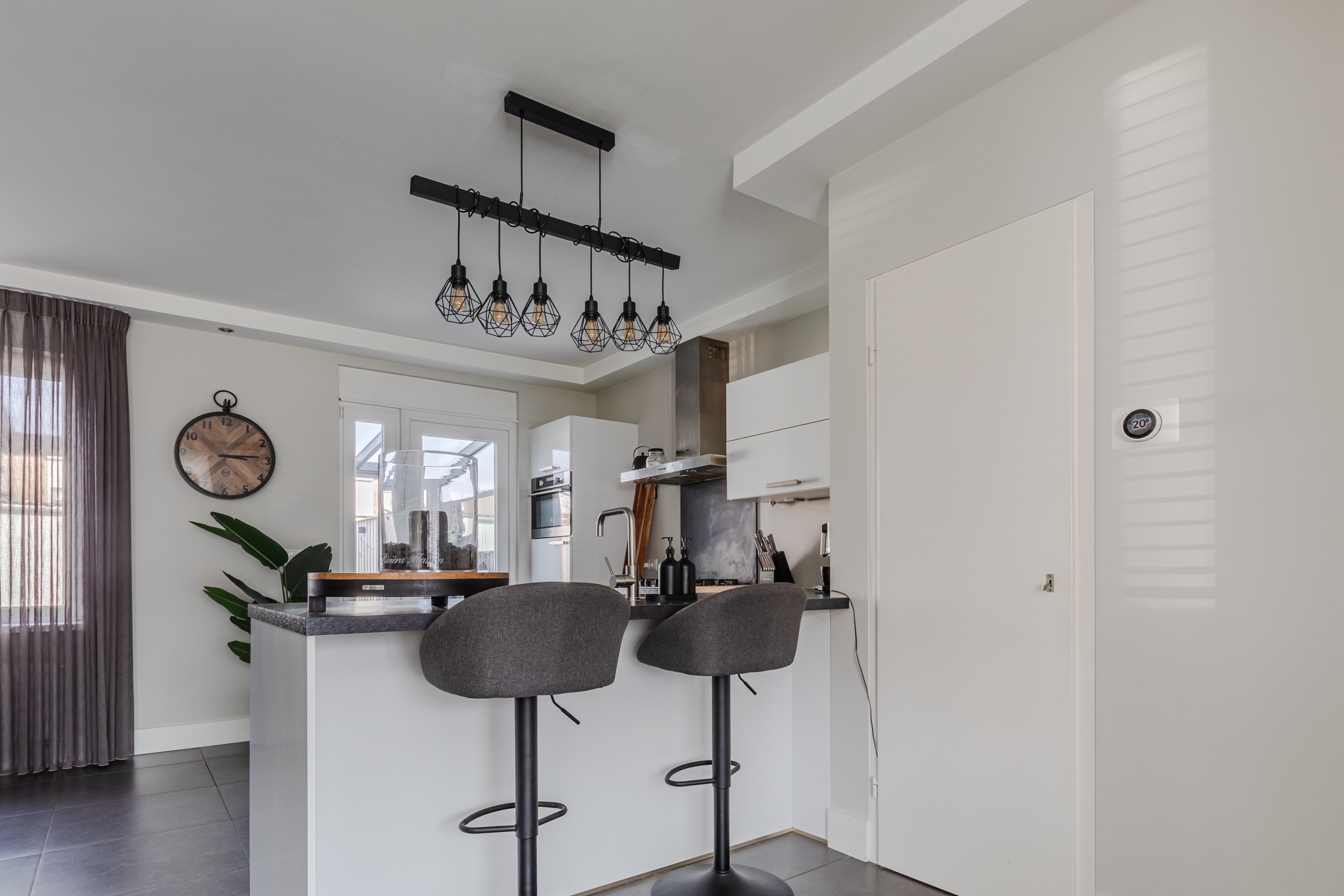 Aan de achterzijde van de woonkamer bevindt zich de woonkeuken met open keuken en gezellig schiereiland.
