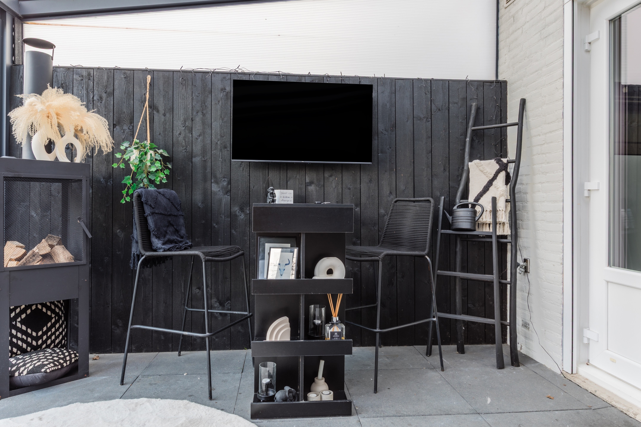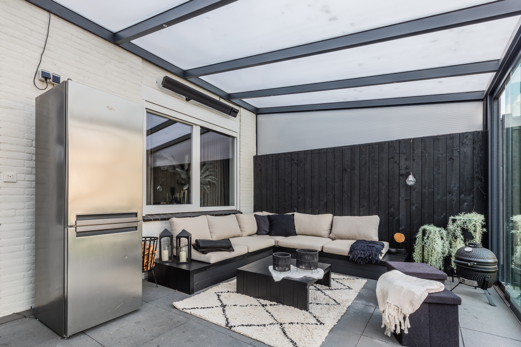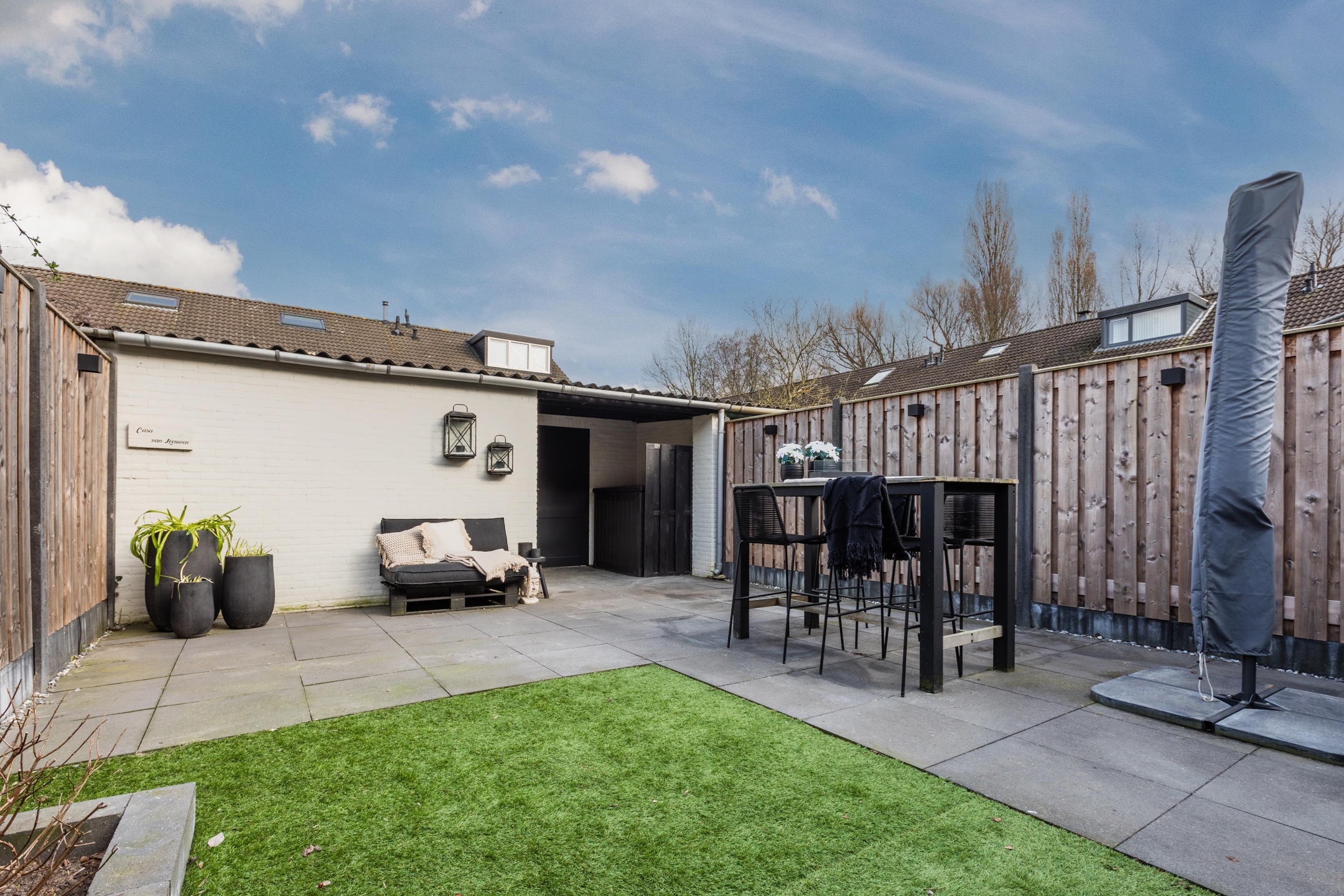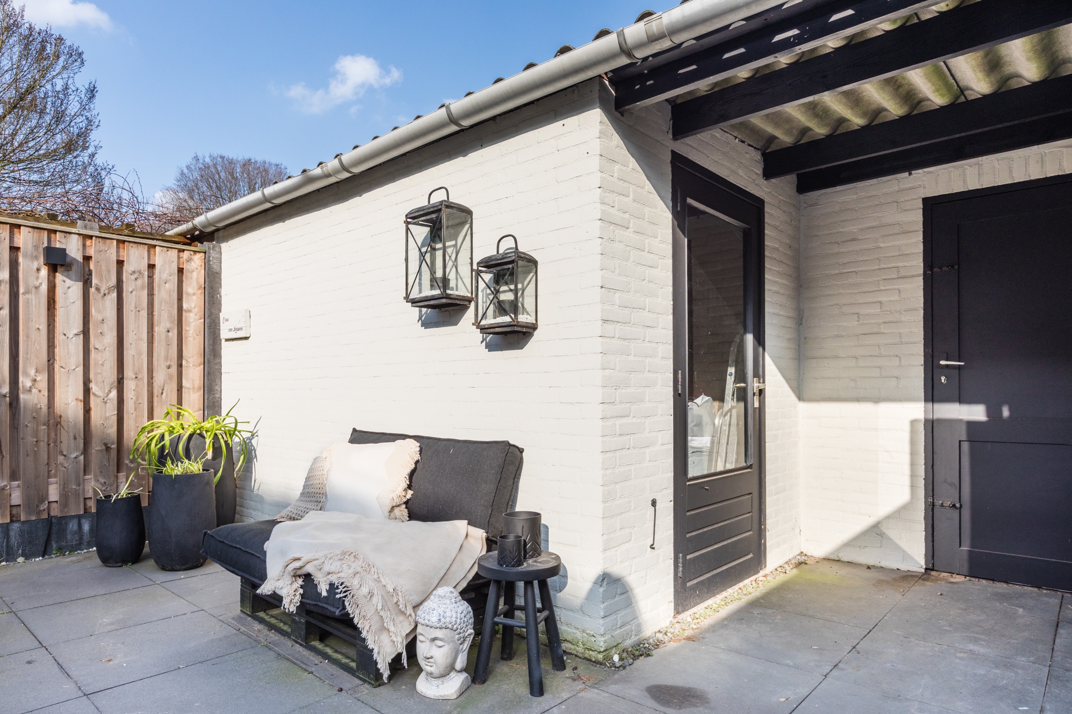 Aan de voorzijde is een heerlijke zithoek gecreëerd.