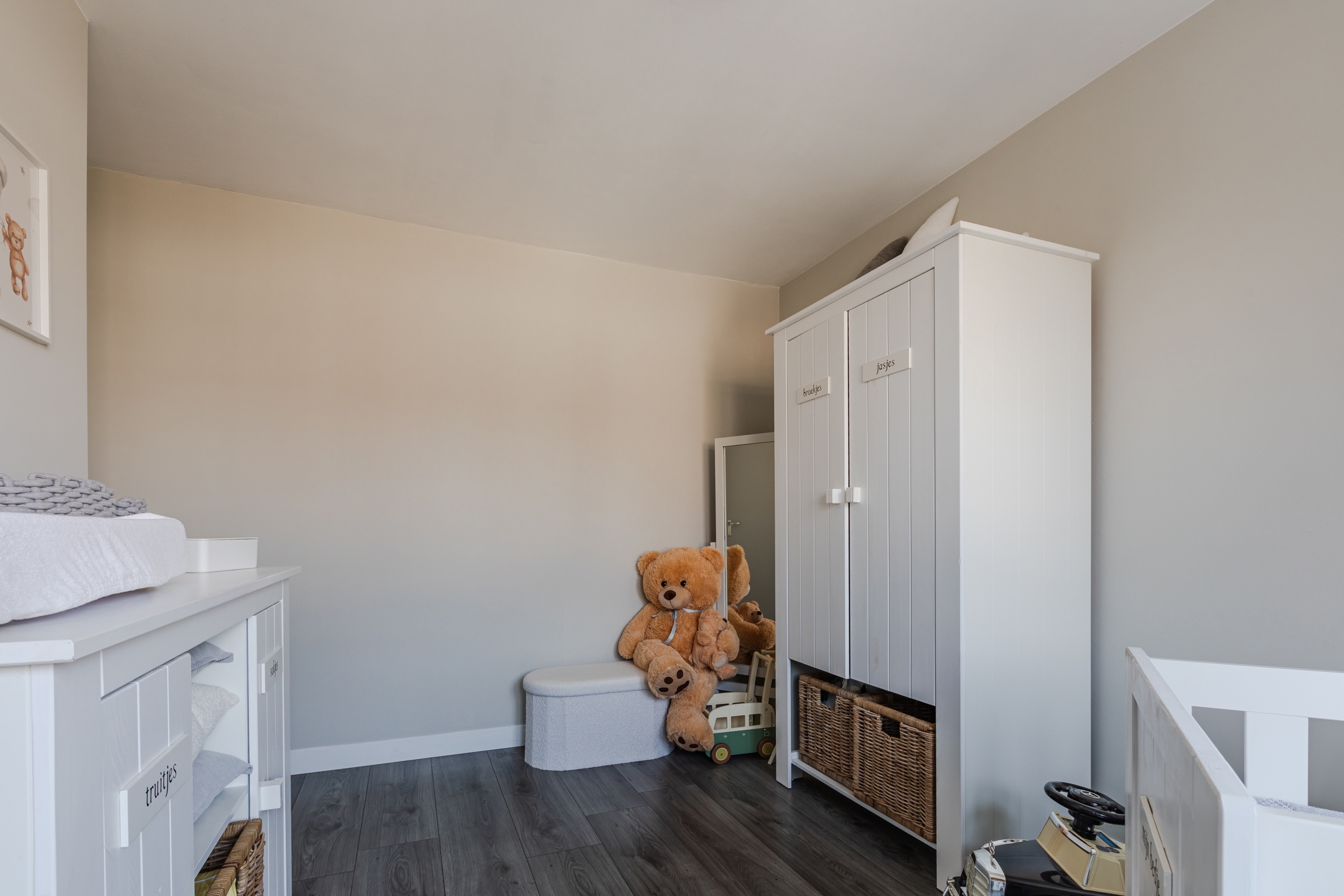Eén slaapkamer wordt nu als inloopkast gebruikt, maar kan eenvoudig teruggebracht worden naar een slaapkamer van maar liefst circa 10m².