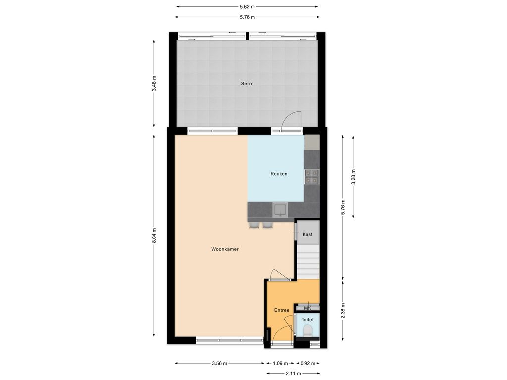Vanuit de keuken loop je zo de serre in, een heerlijke plek waar je het hele jaar door van kunt genieten.