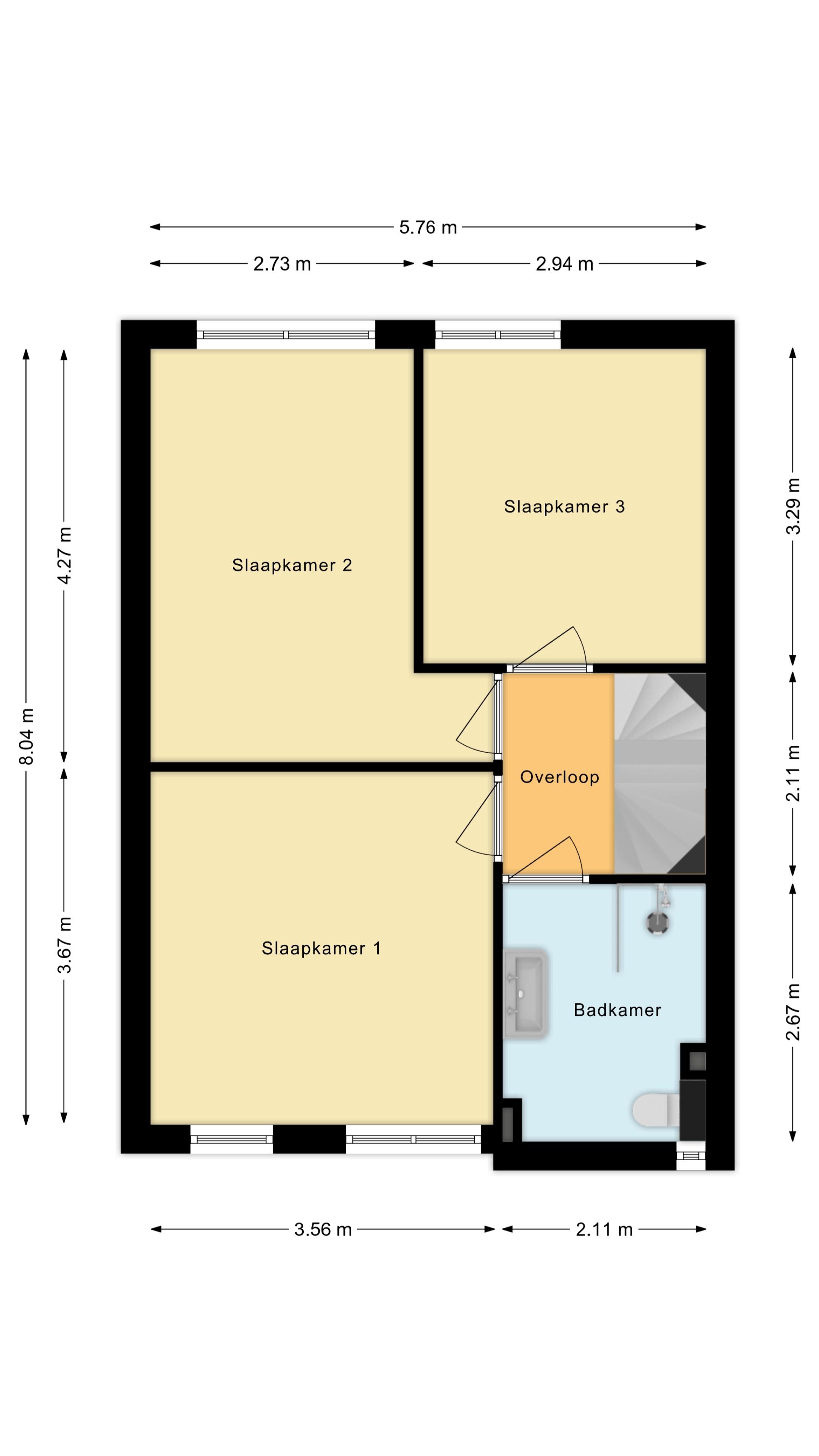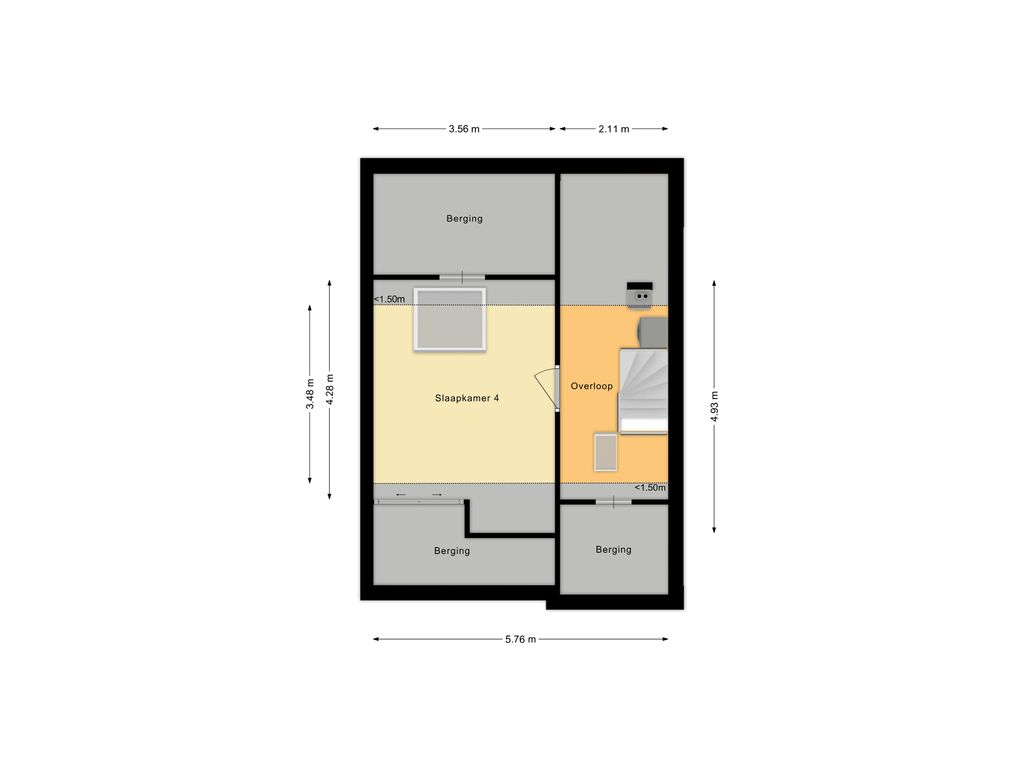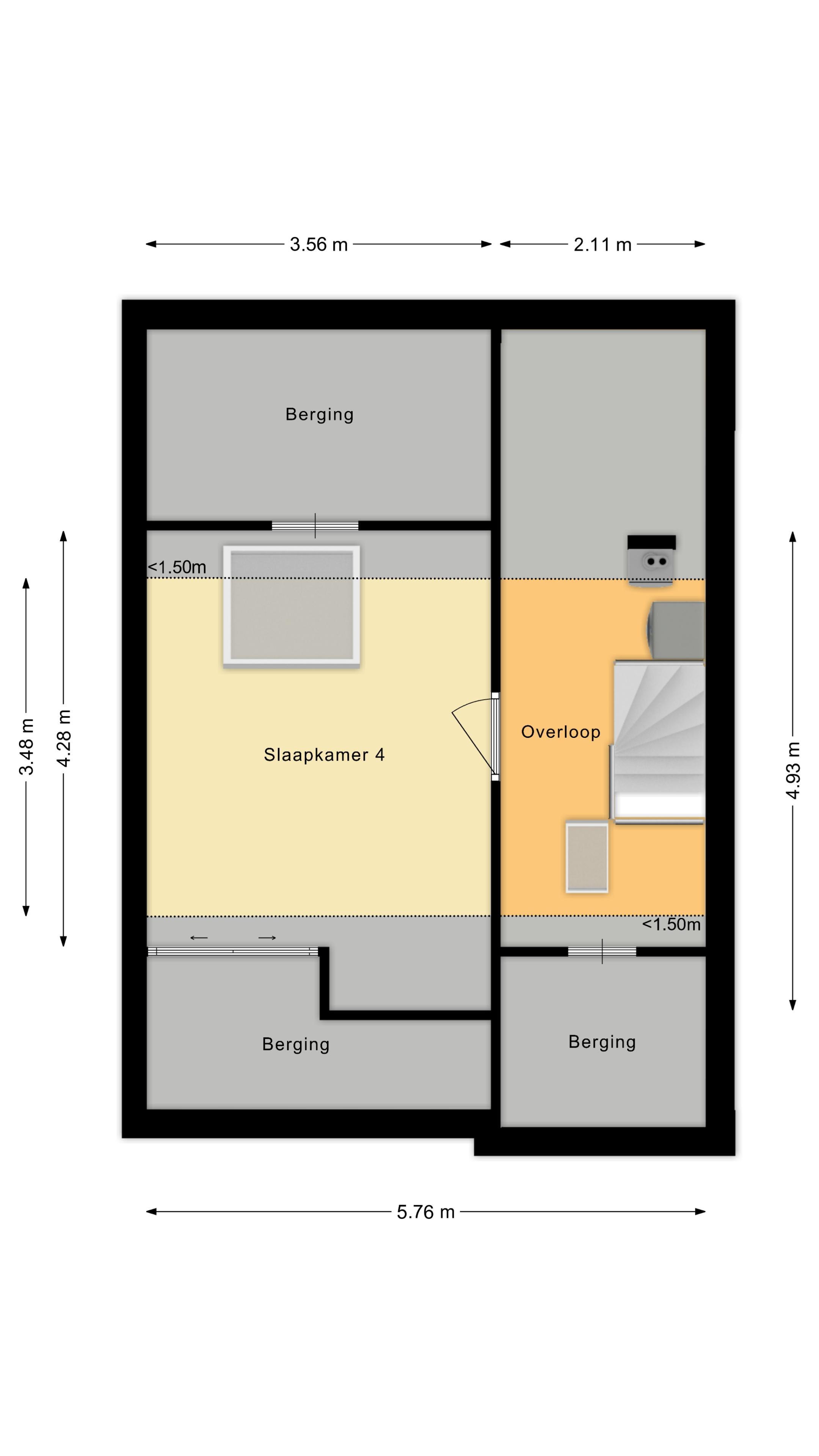 Via een vaste trap bereik je de tweede verdieping.