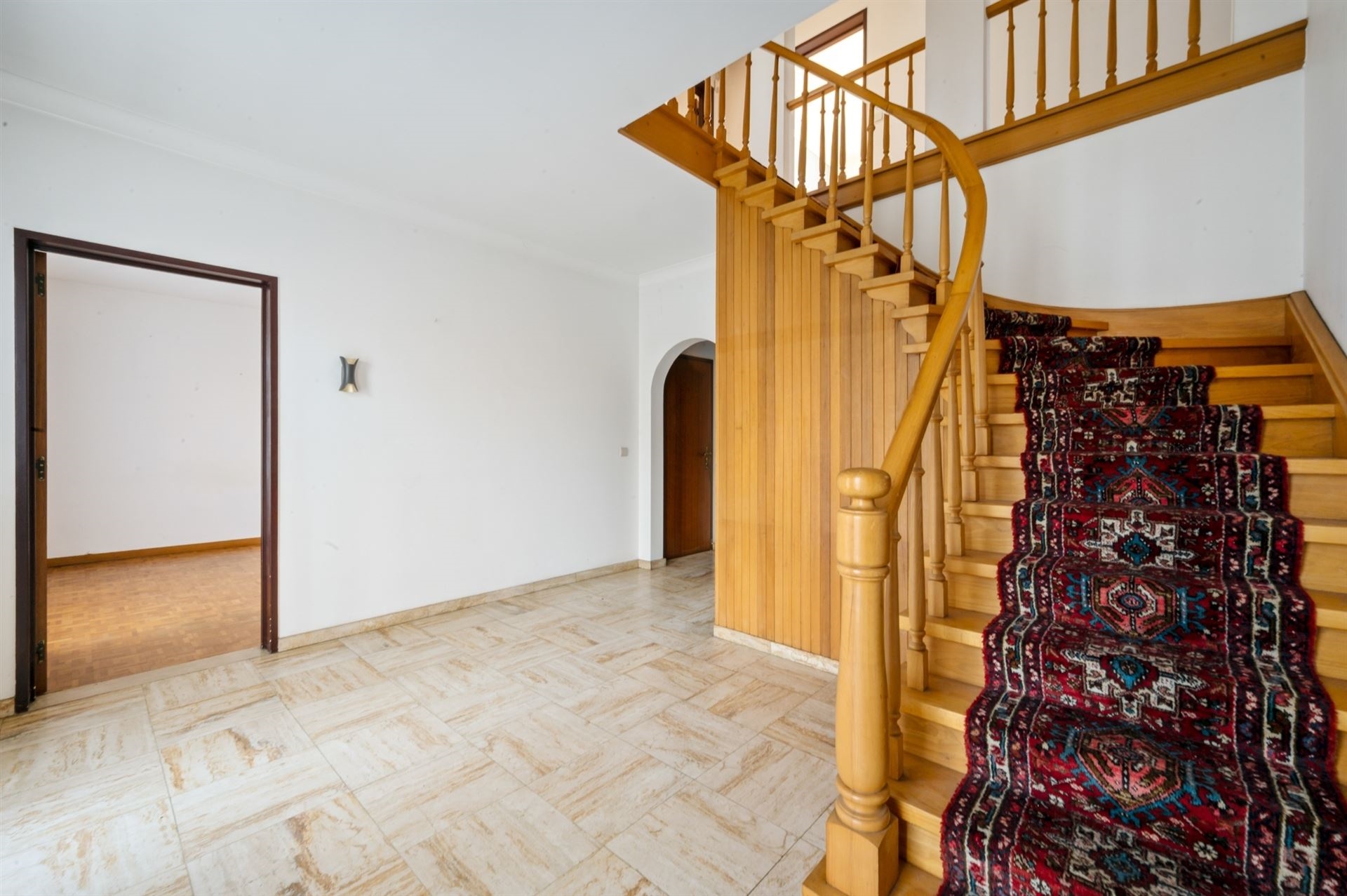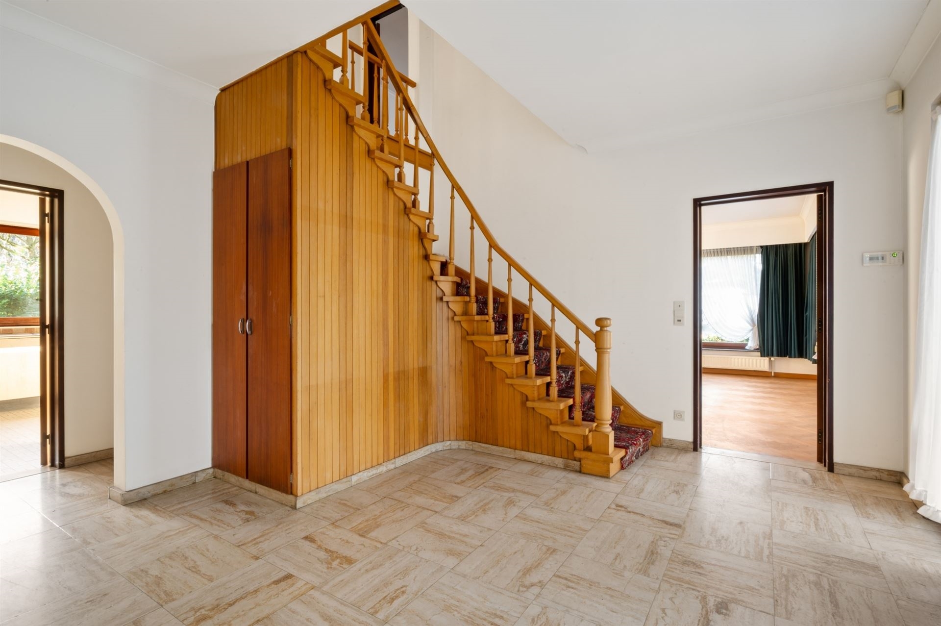 Beschrijving: U betreedt deze villa via de centrale inkomhal met gastentoilet, die toegang verleent aan de verschillende ruimtes.