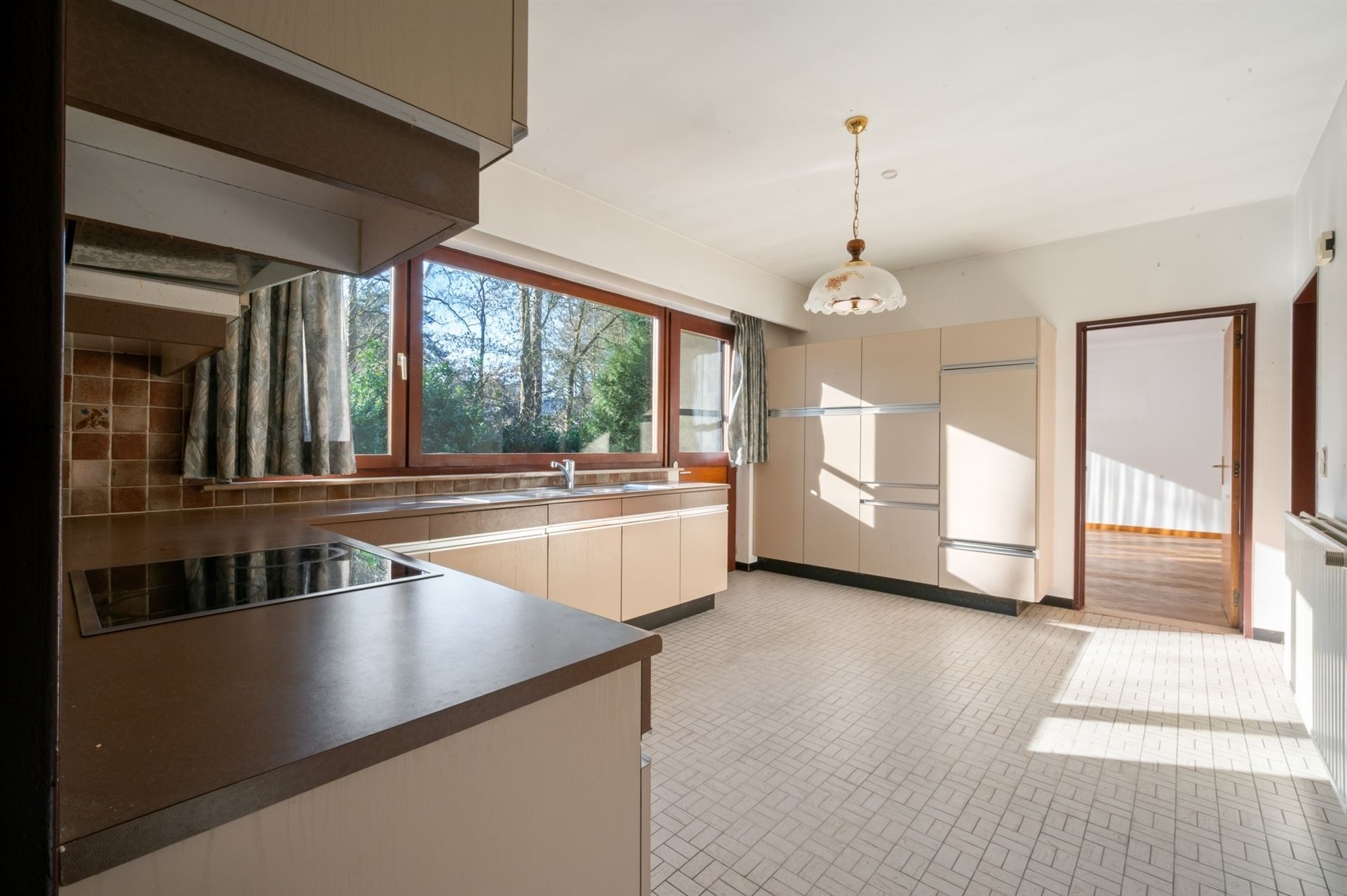 De ruime woonkamer kan praktisch ingedeeld met een zithoek en een eethoek met naast gelegen de keuken.