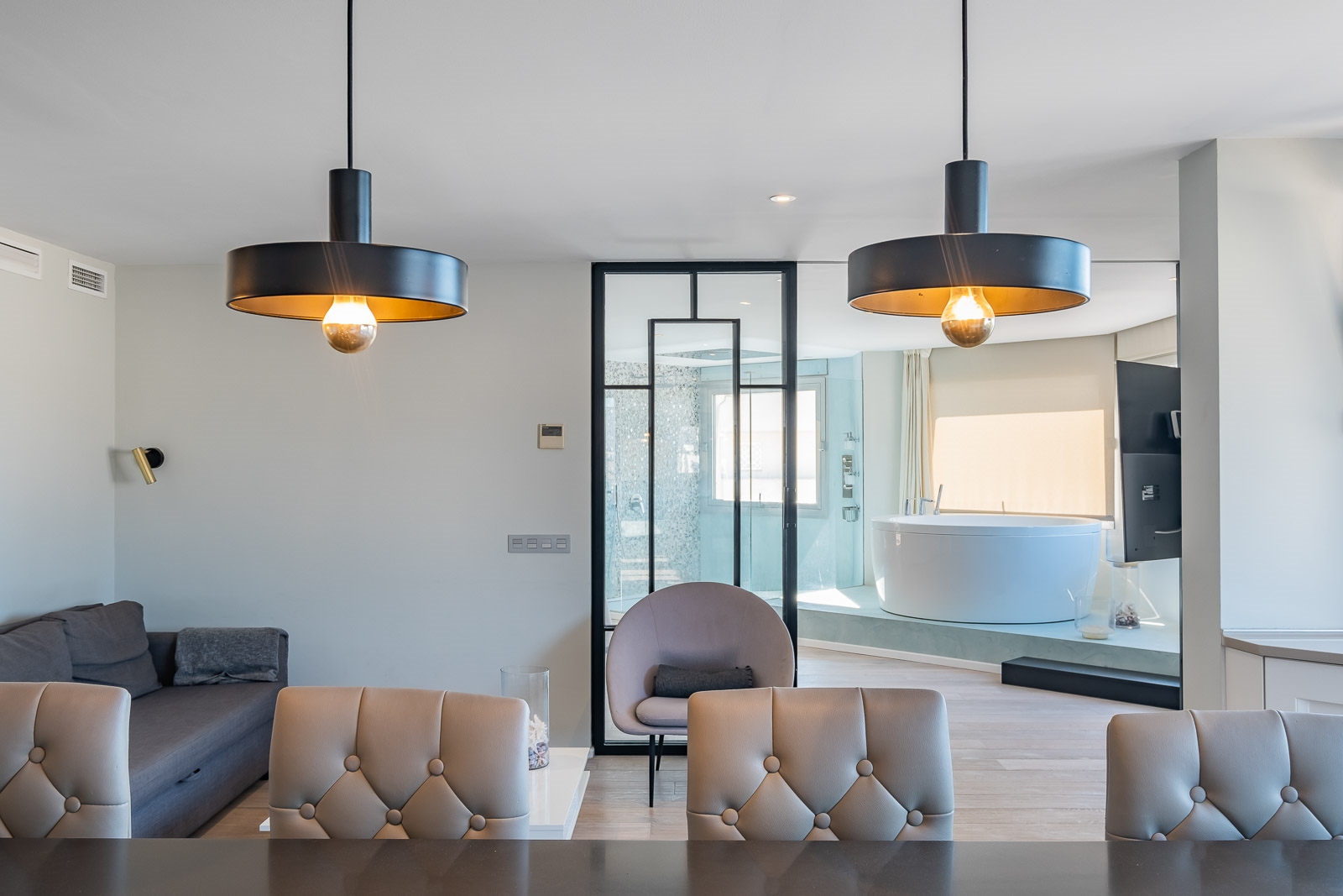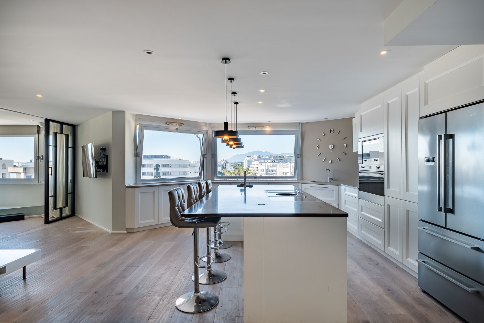 Dit duplex penthouse strekt zich uit over twee verdiepingen en beschikt over adembenemende ruimten.