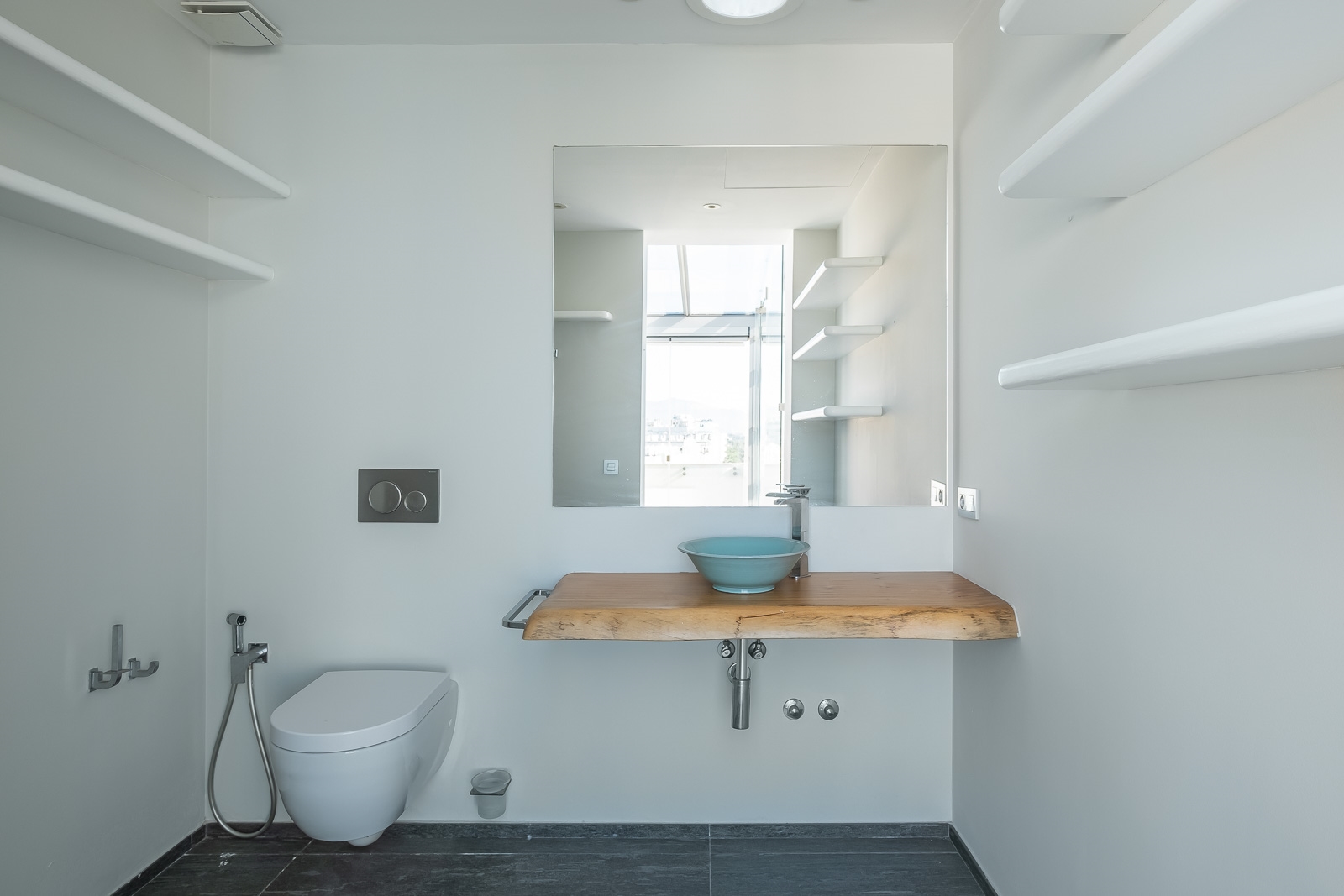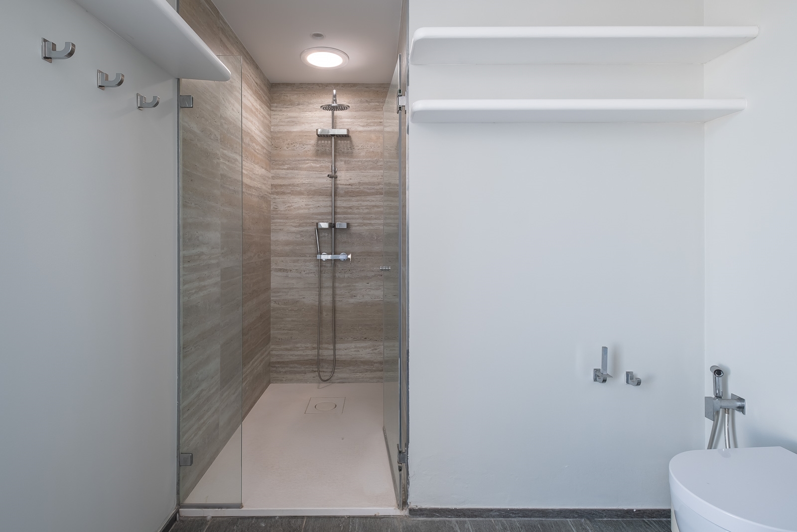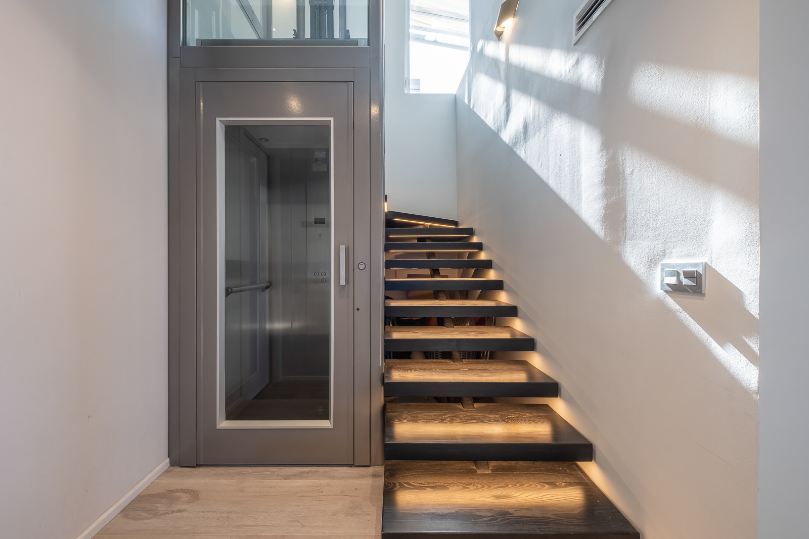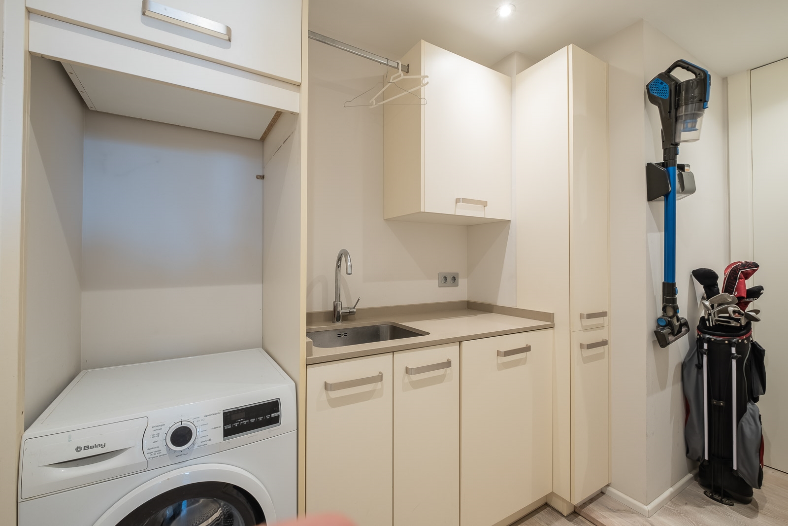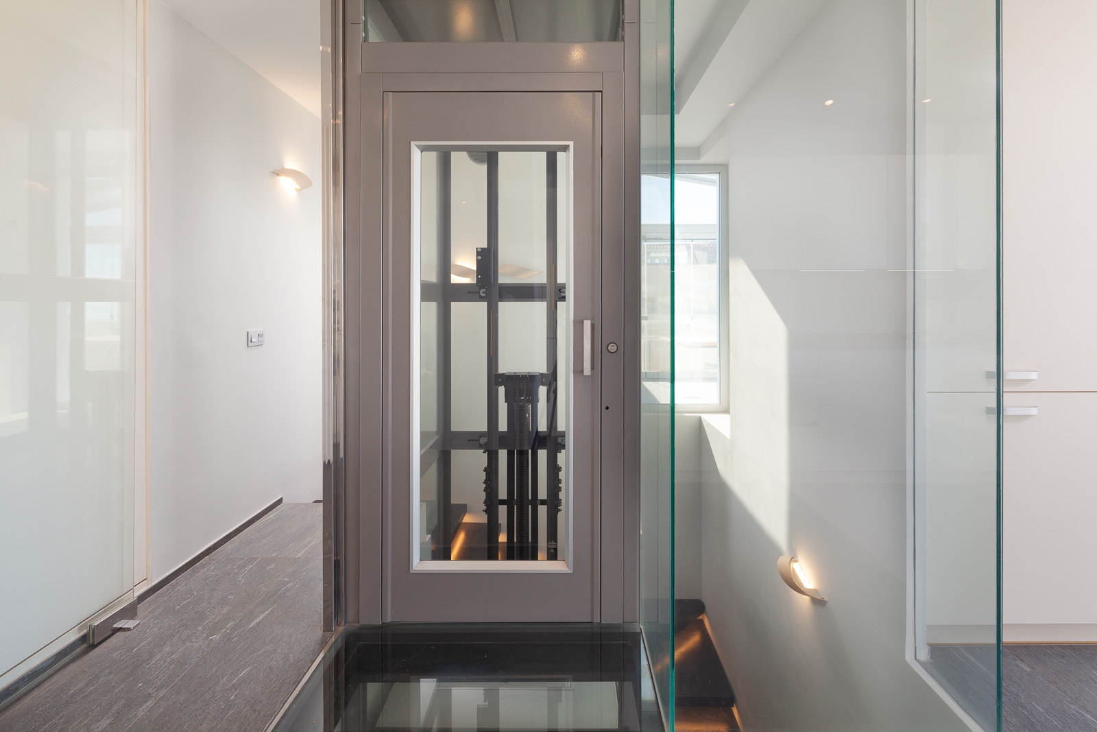 De aparte was- en bergruimte is goed gelegen achter de privé lift en -trap.