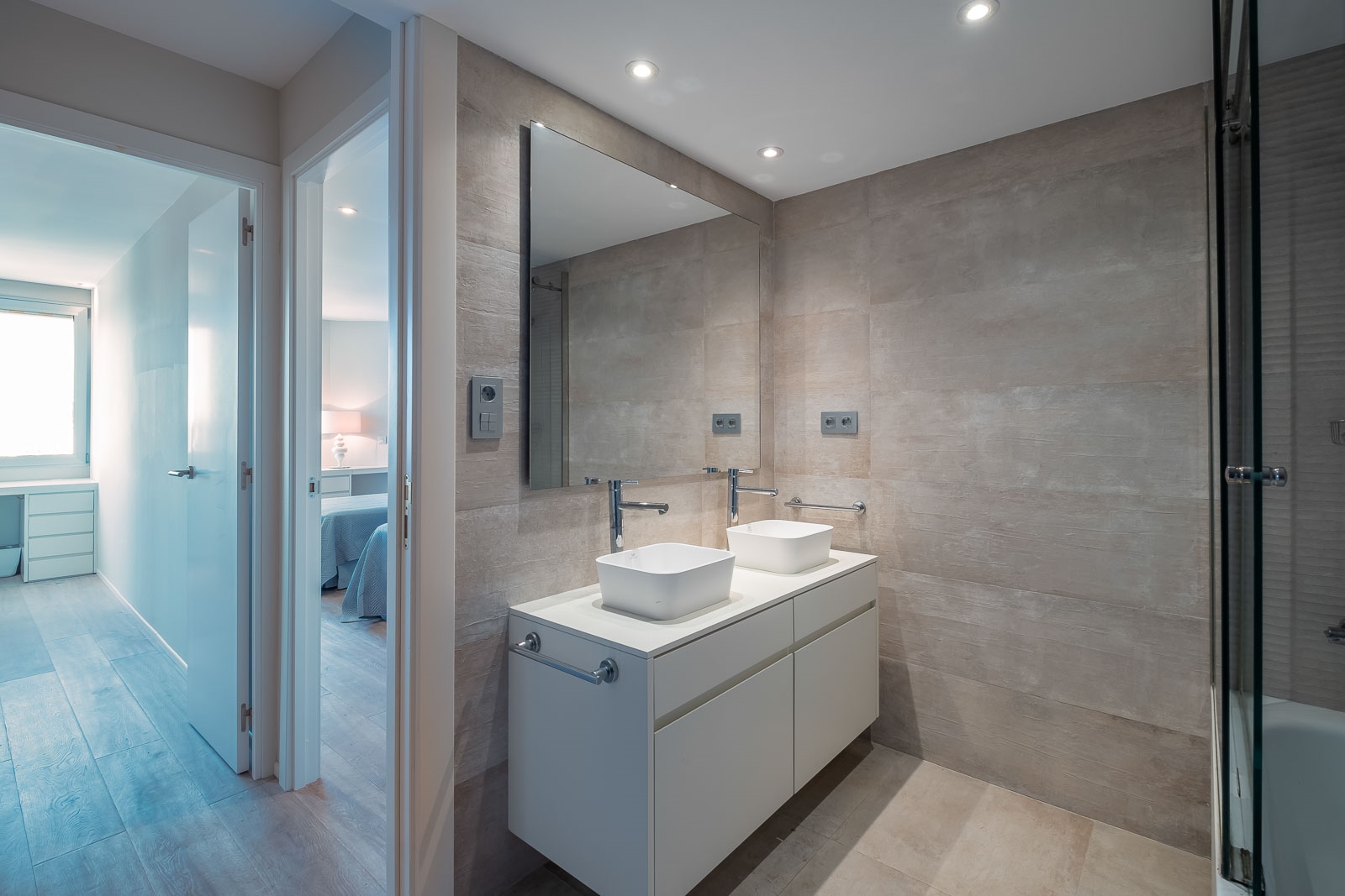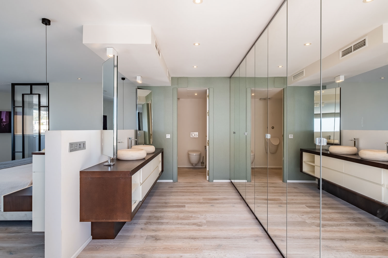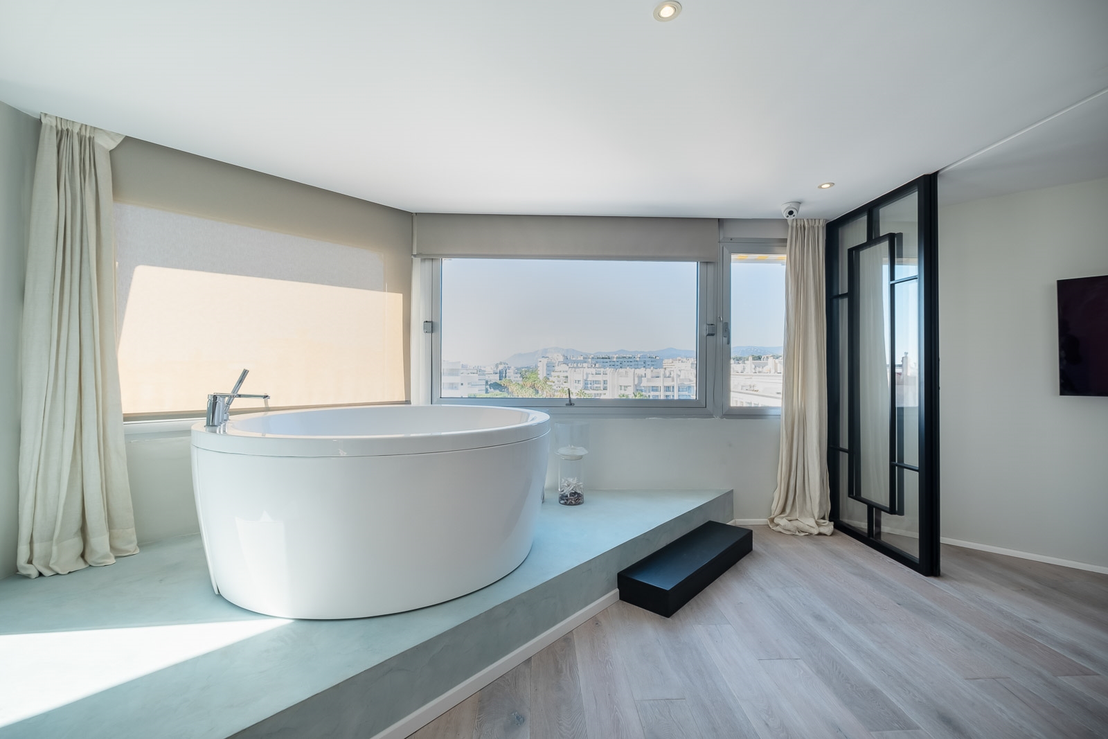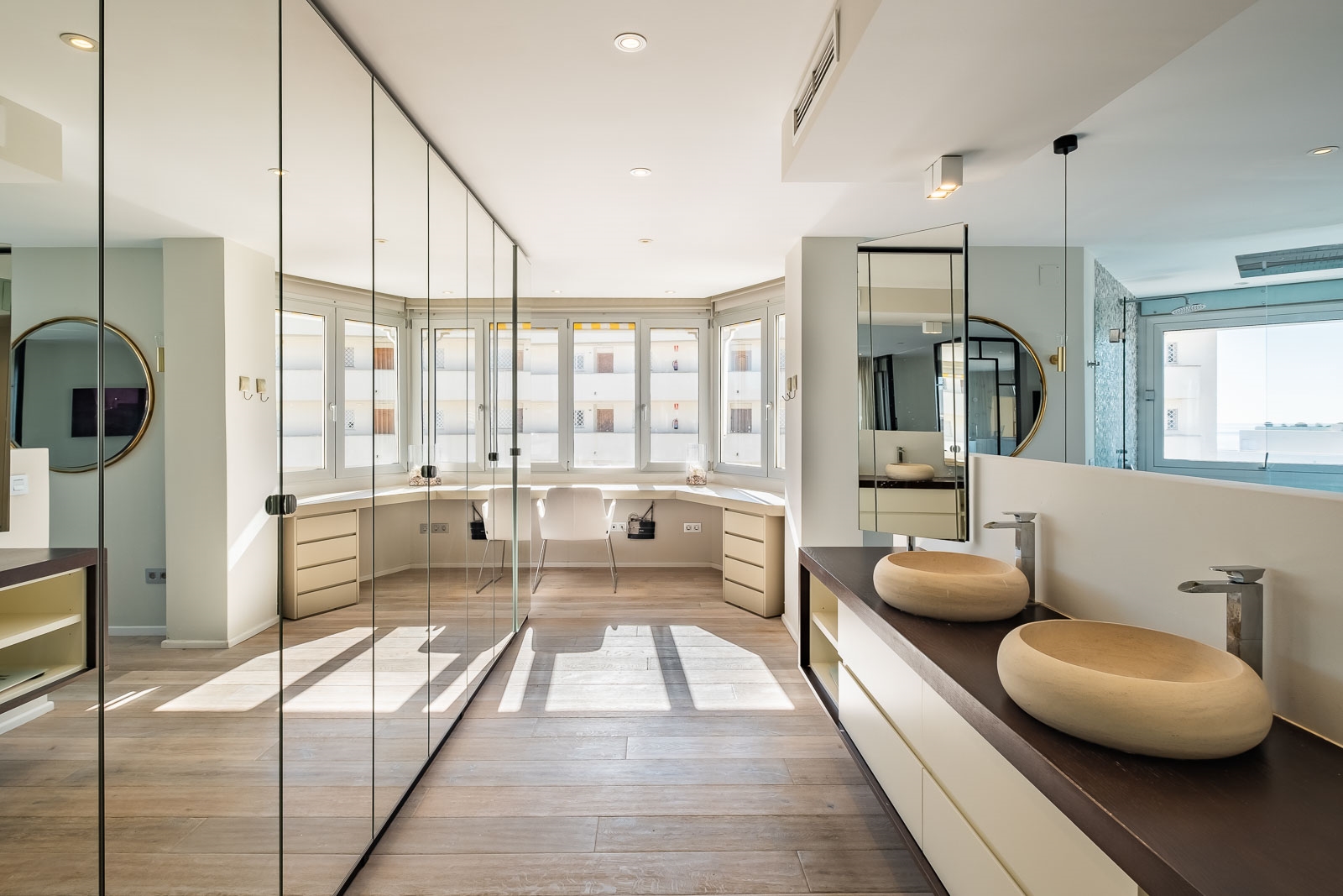 Op de benedenverdieping is ook de luxe en zeer ruime master suite gesitueerd met een zeer ruime regendouche en een groot vrijstaand bad.