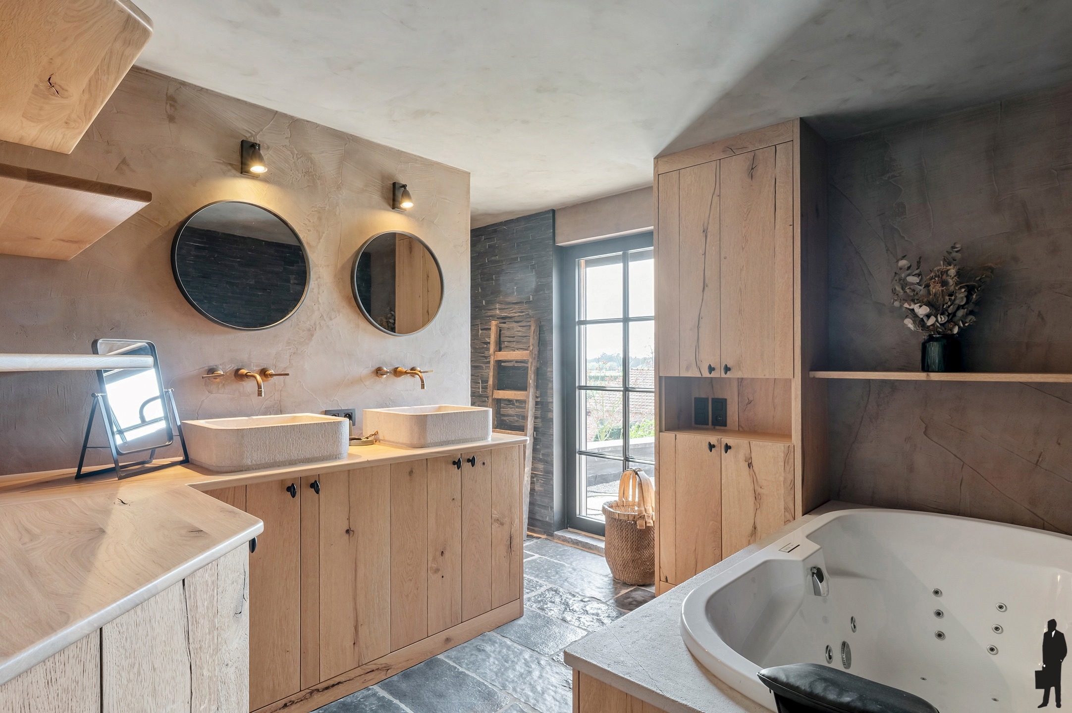 Deze badkamer is uitgerust met een bubbelbad, inloopdouche en infraroodspiegel, wat zorgt voor een heus wellnessgevoel.