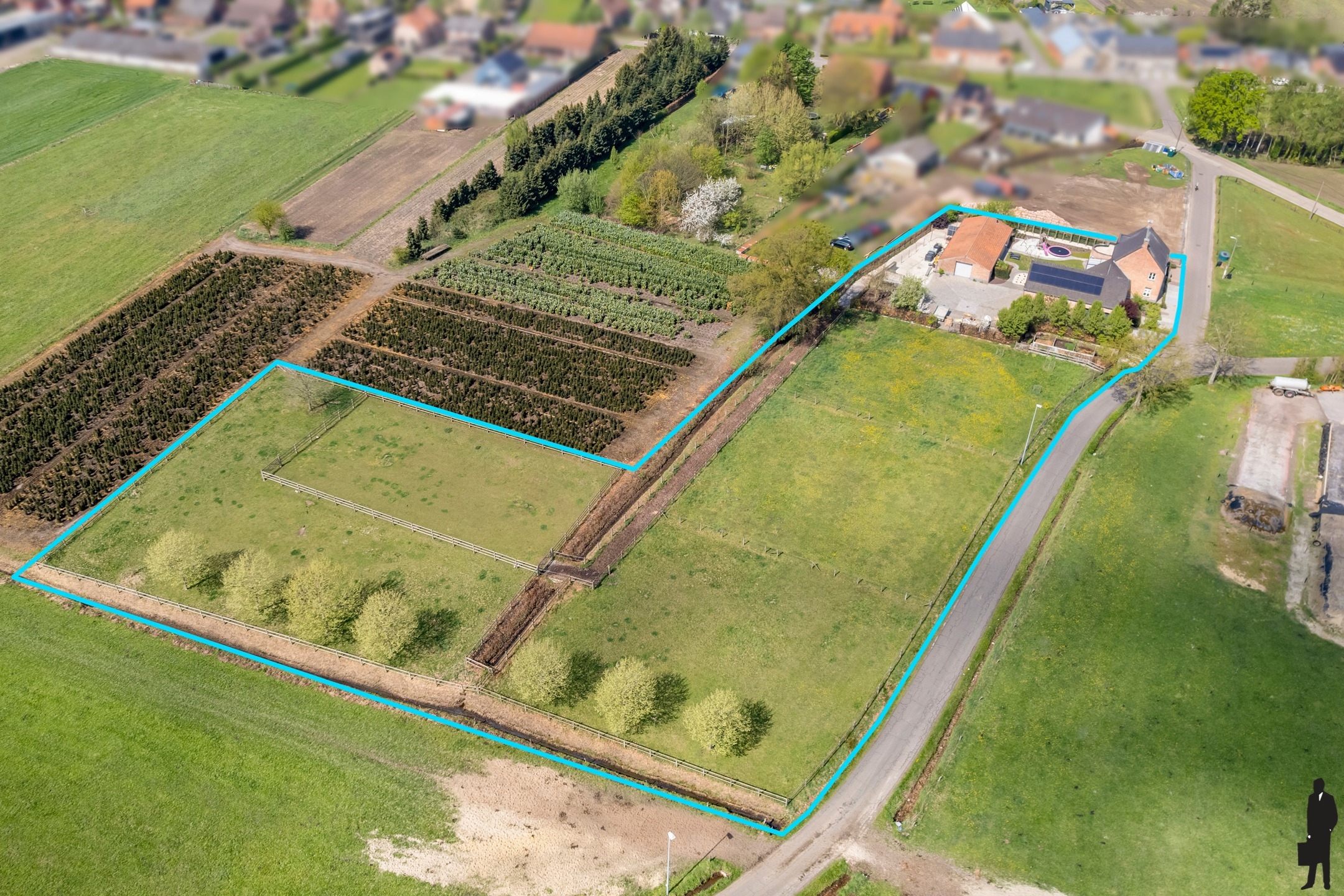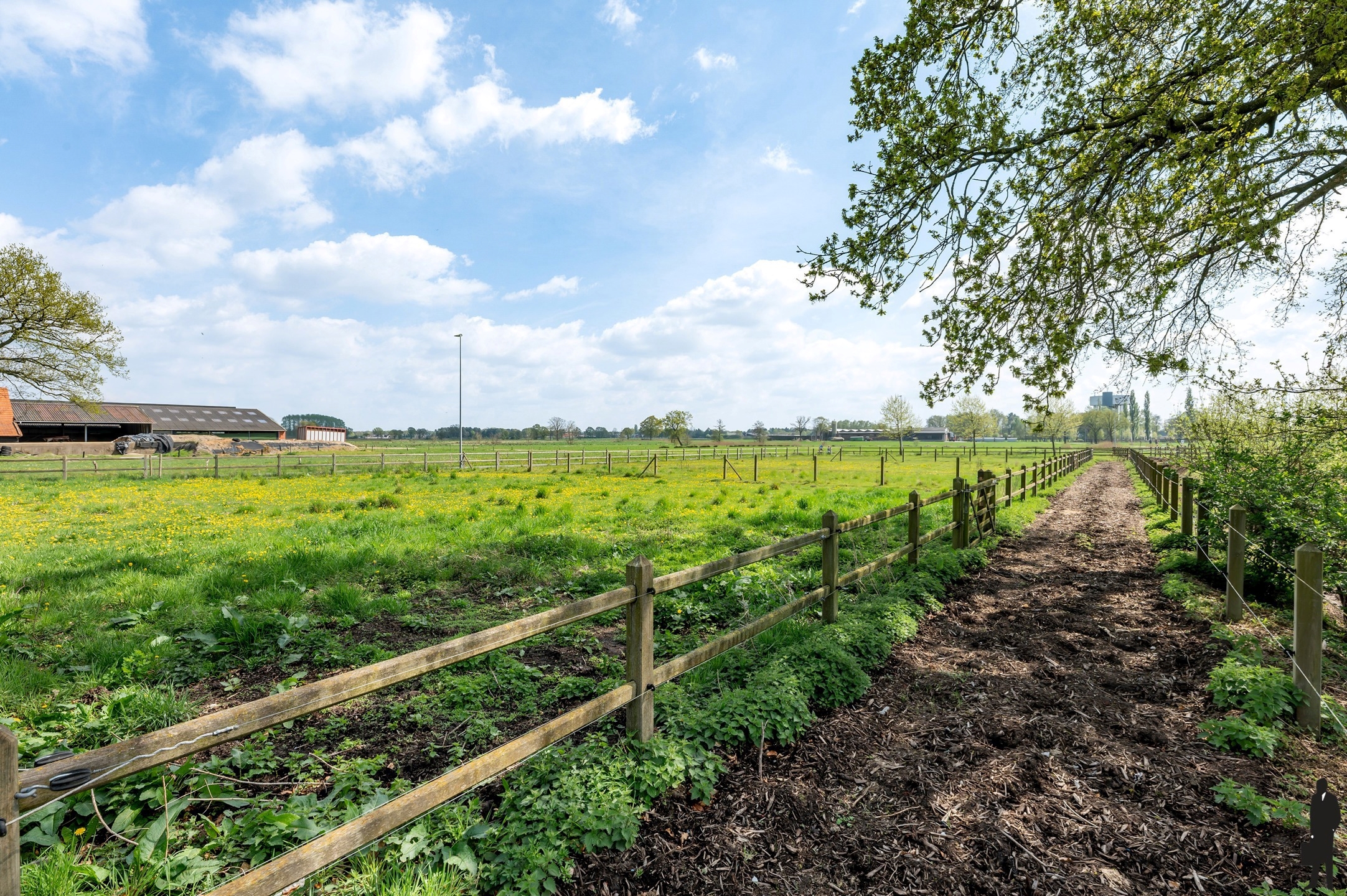 De rondom gelegen weides zijn reeds afgemaakt met het oog op het houden van paarden.