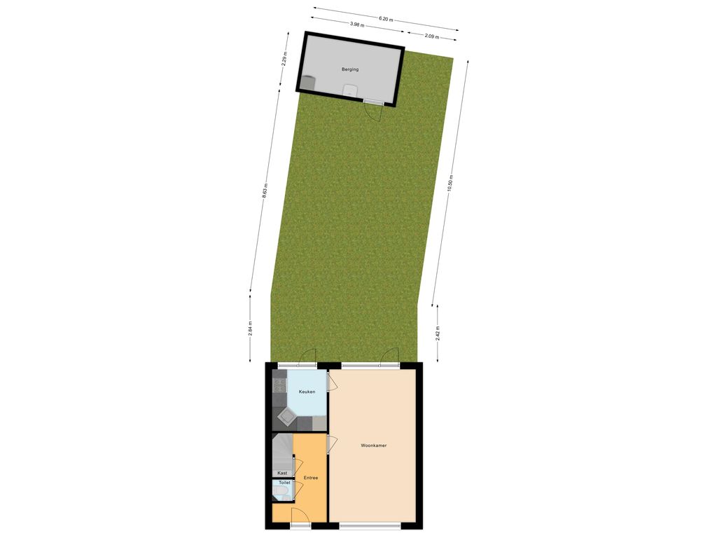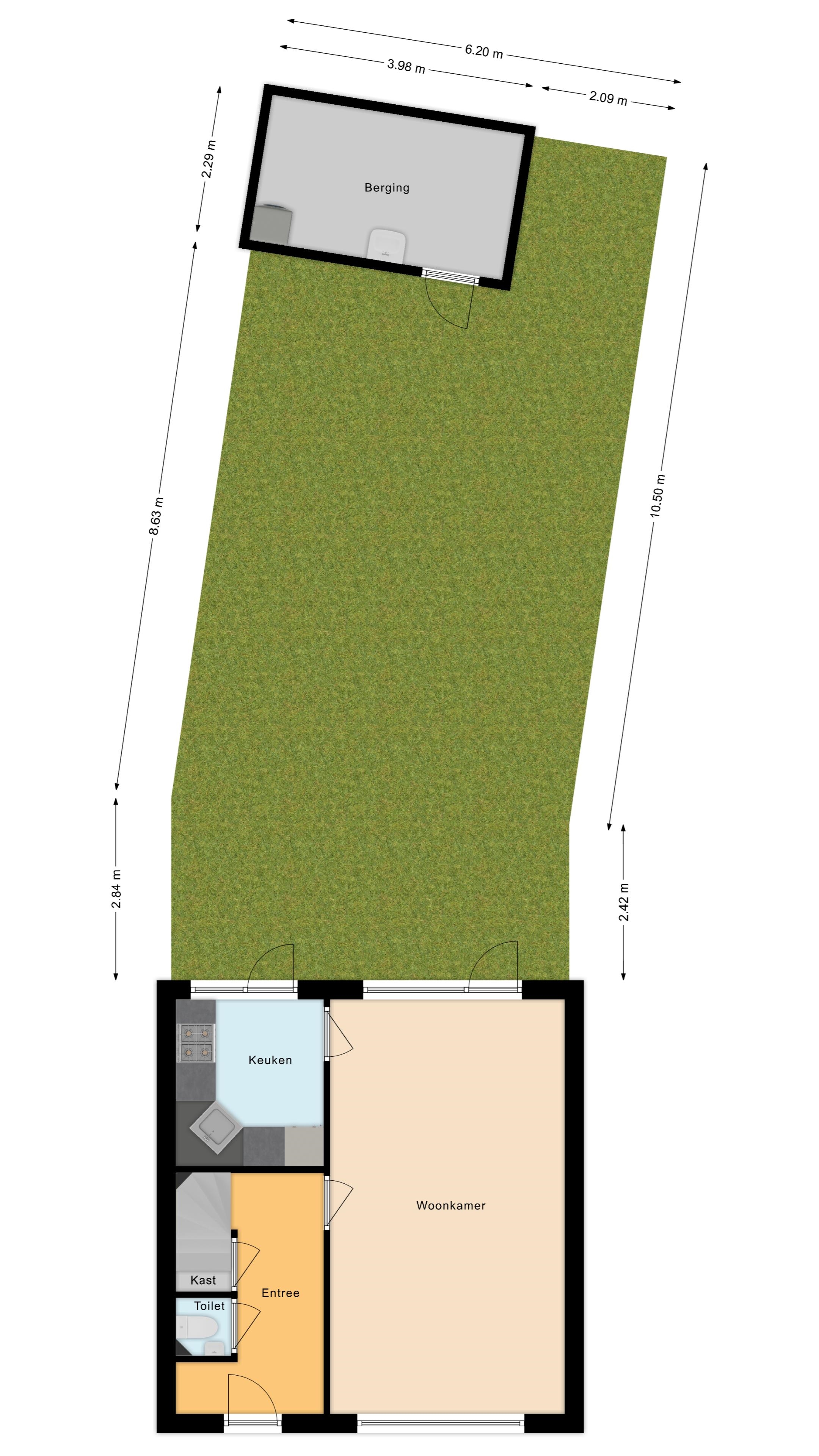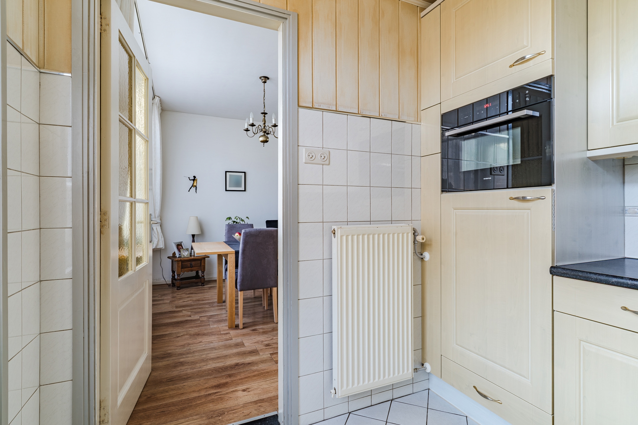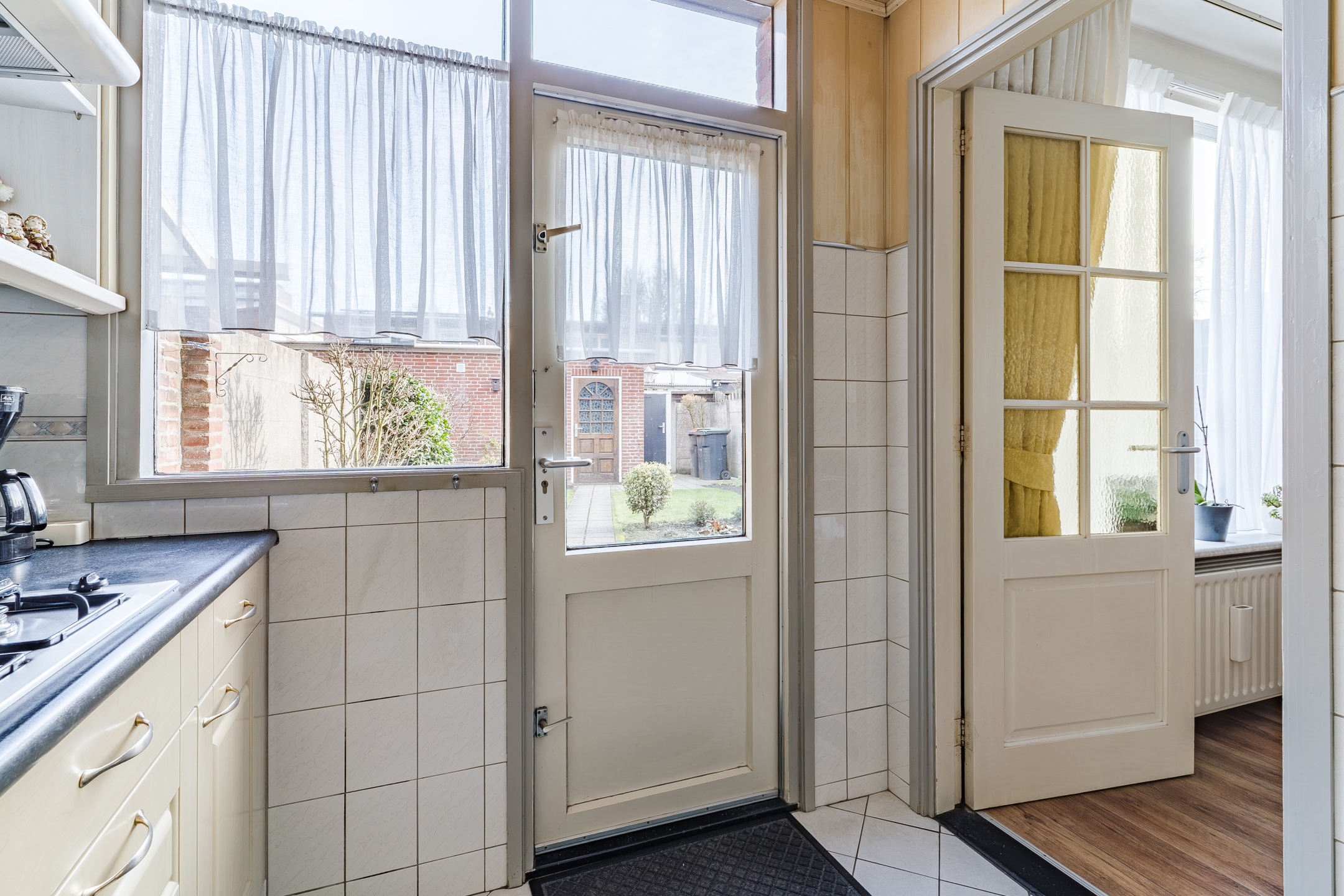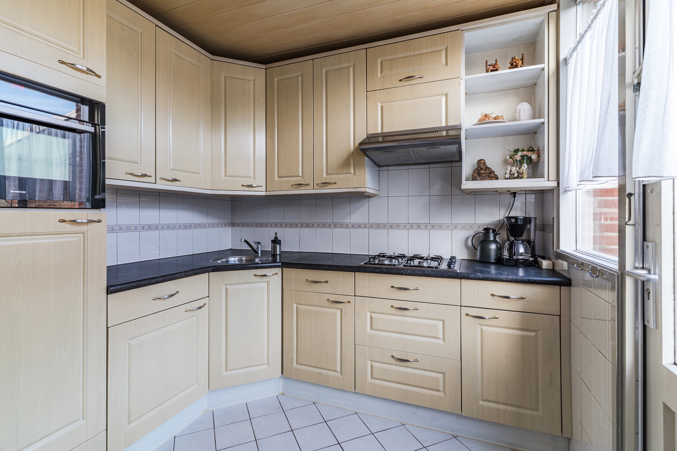 De keuken aan de achterzijde biedt directe toegang tot de tuin, ideaal als je van buiten eten houdt of groene vingers wil laten wapperen.