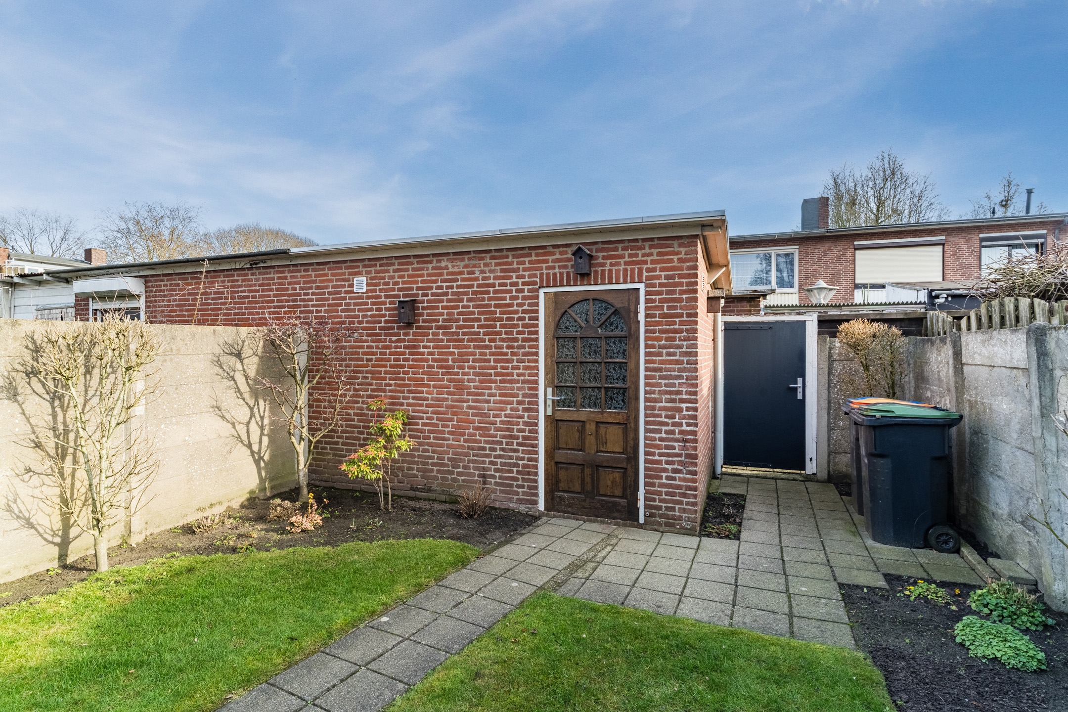 De achtertuin van 66 m² is een heerlijke plek om te relaxen in het zonnetje, kids veilig buiten te laten spelen of gezellig met vrienden te barbecueën.