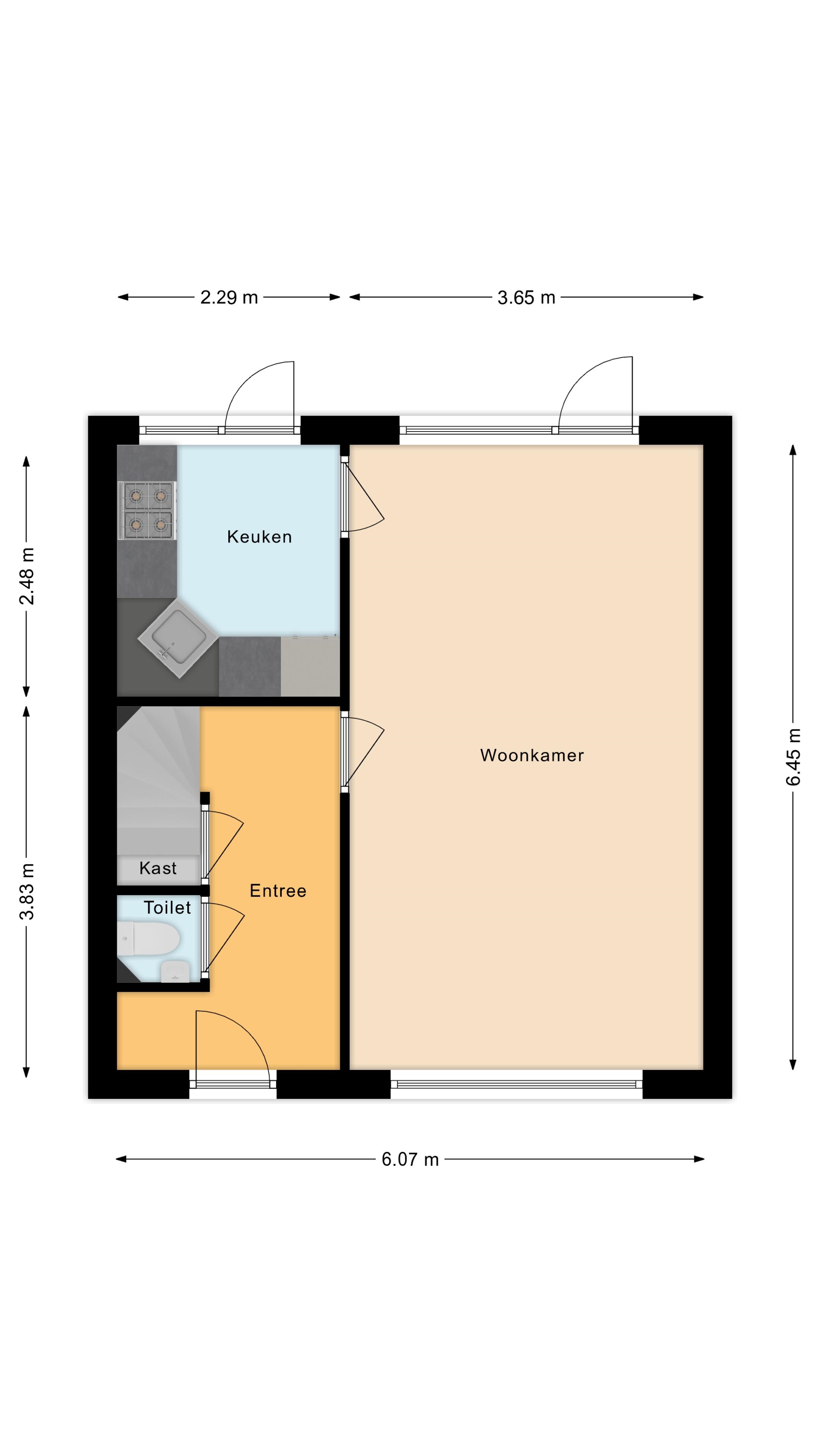 Genoeg plek voor een stel, een jong gezin of zelfs een fijne thuiswerkplek.