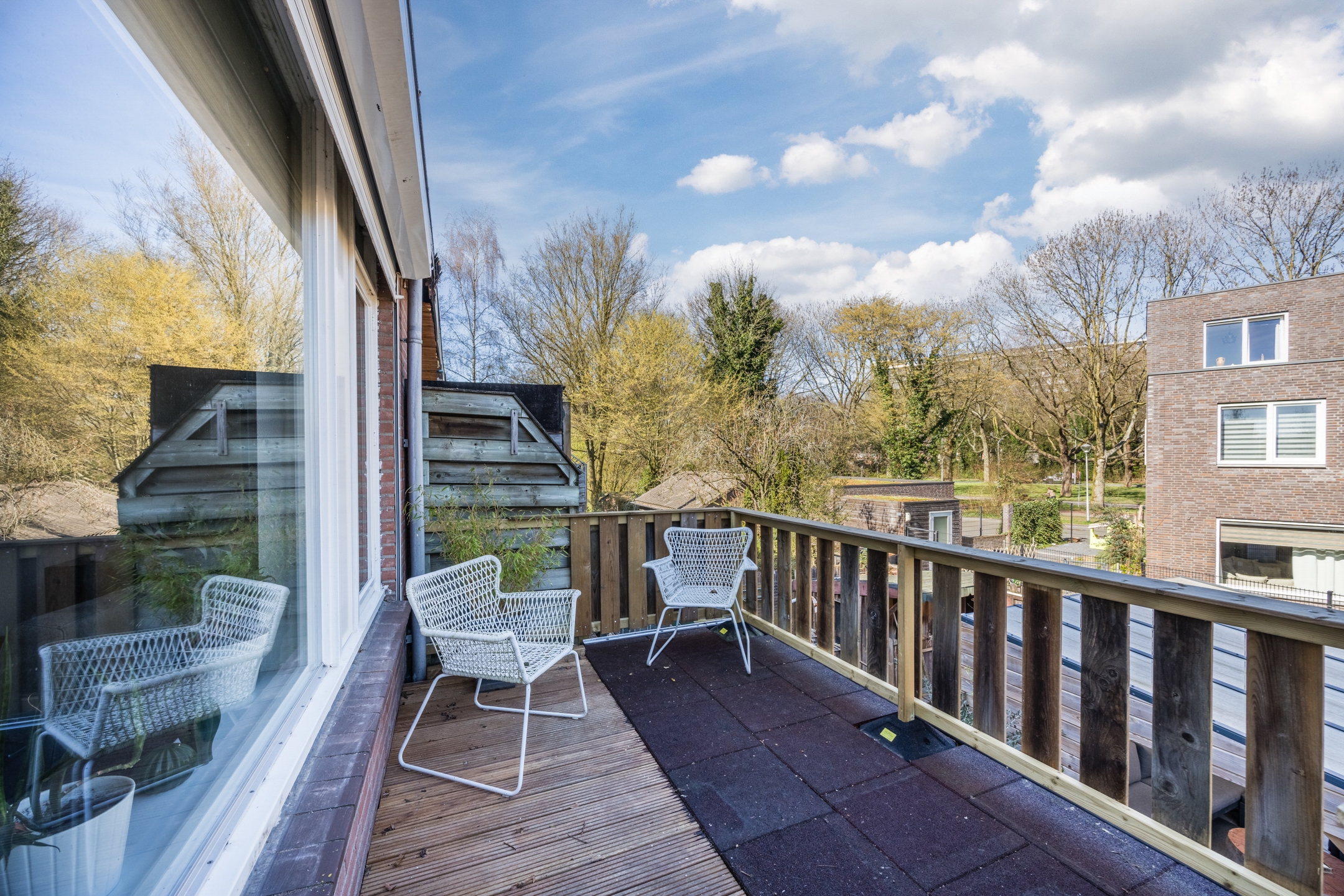 Dankzij het balkon aan de achterkant kun je altijd genieten van een kop koffie in de ochtendzon.