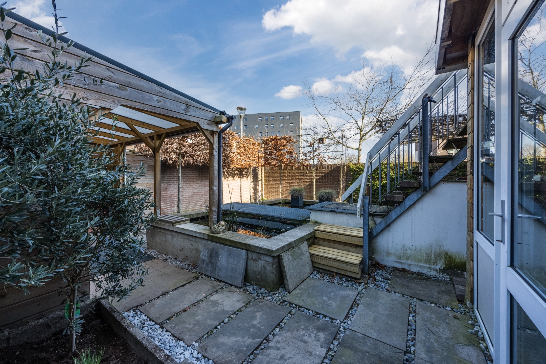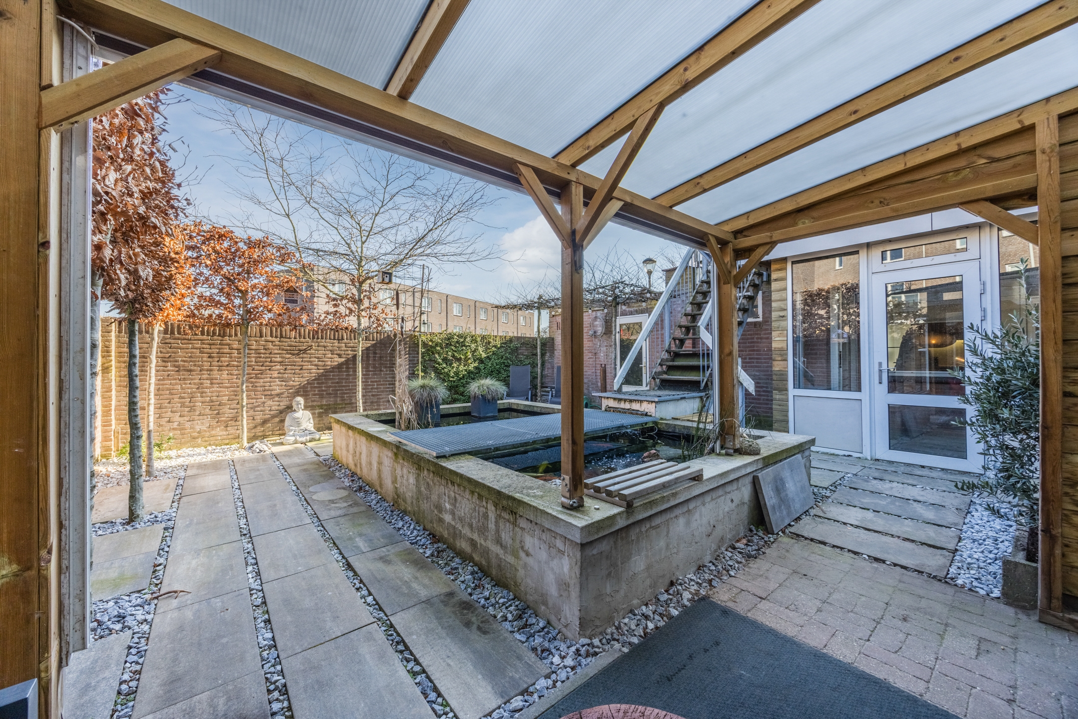 De grote vijver is een echte eyecatcher en brengt rust en ontspanning.