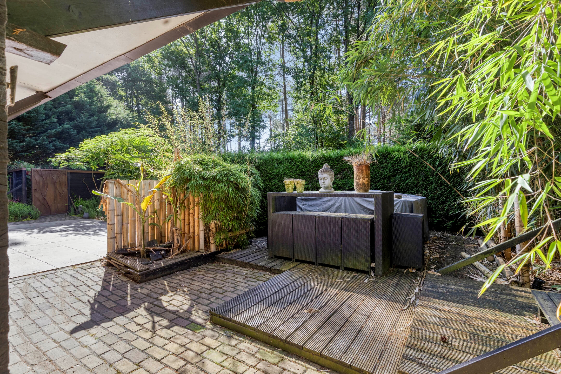 De tuin rondom de woning is een waar paradijs. Hier kun je heerlijk buiten zitten, barbecueën of gewoon ontspannen en genieten van de rust. Met de bosrijke omgeving als je achtertuin, nodigt deze plek uit tot lange wandelingen en buitenactiviteiten.
