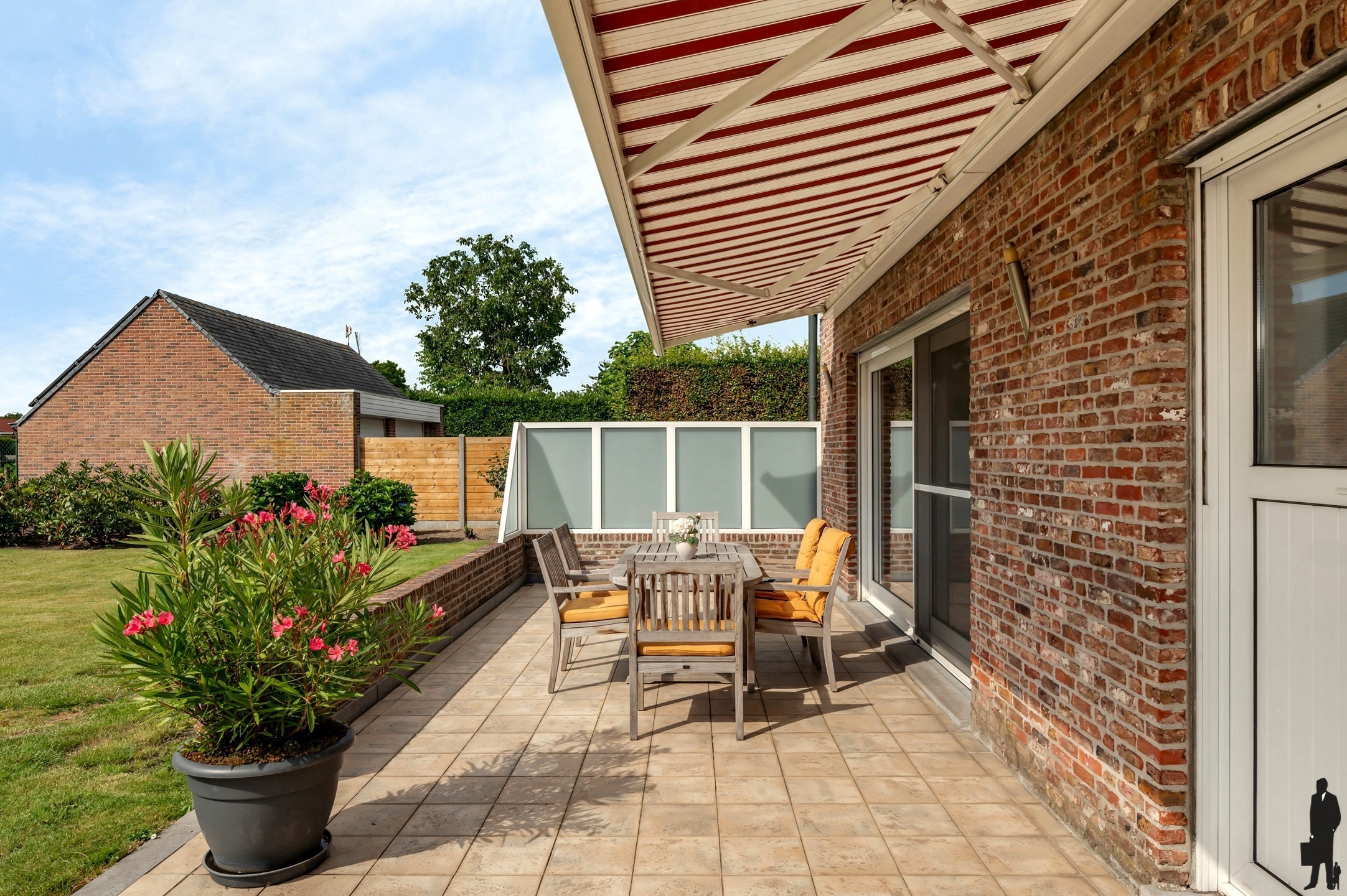 Dankzij de schuifpui met zonneluifel vloeien binnen en buiten naadloos in elkaar over.