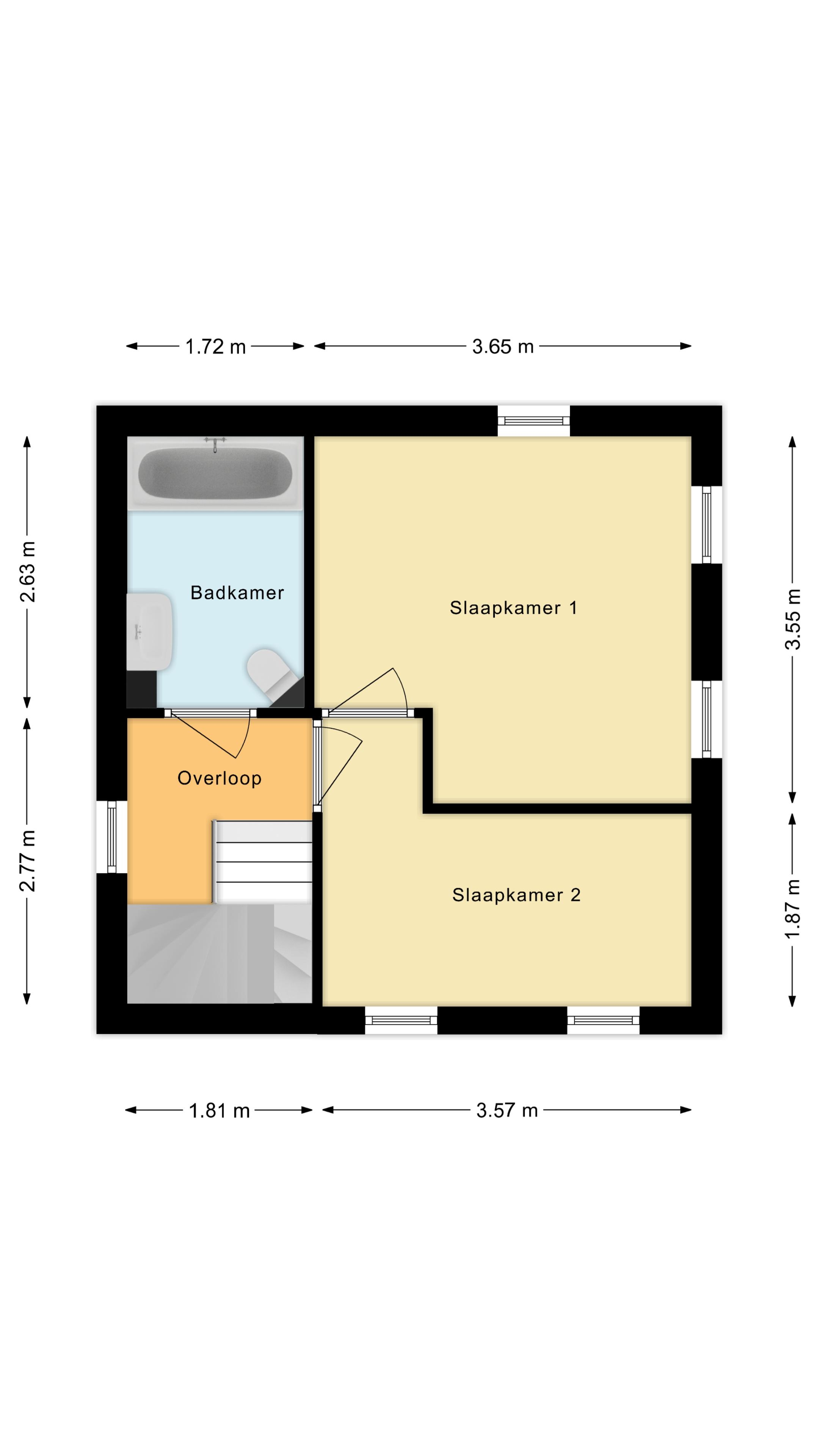 Op de eerste verdieping heb je 2 slaapkamers die diverse mogelijkheden bieden om naar eigen wens in te richten.