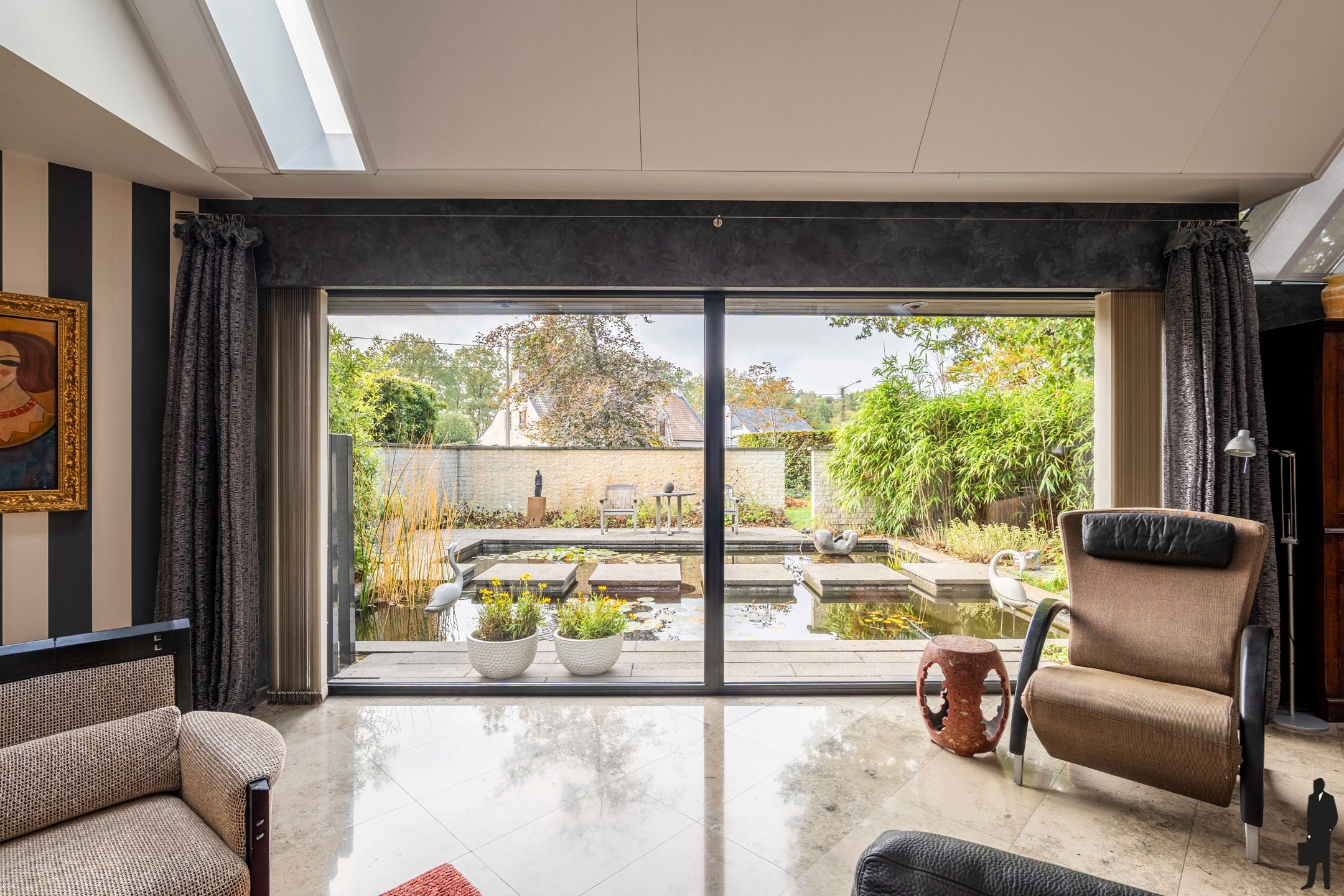 Zij geniet van veel natuurlijk daglicht door de riante raampartijen die uitgeven op de vijver en de omliggende parktuin.