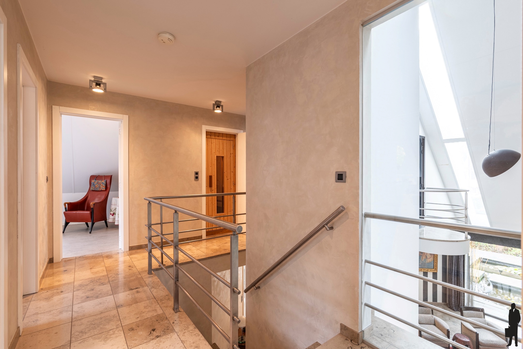 Op de bovenverdieping bevinden zich 3 ruime slaapkamers (enkele met inbouwkastruimte), een douchekamer, een bergruimte en saunakamer.