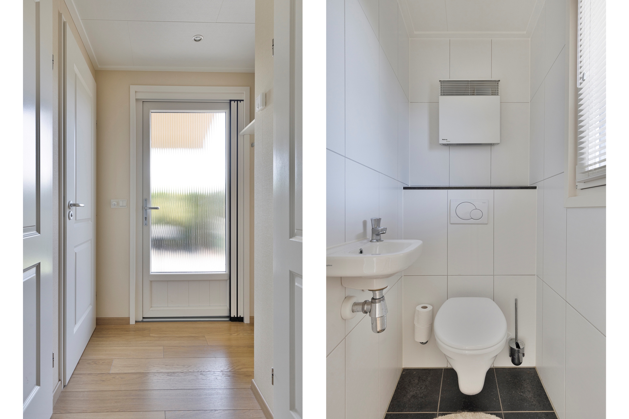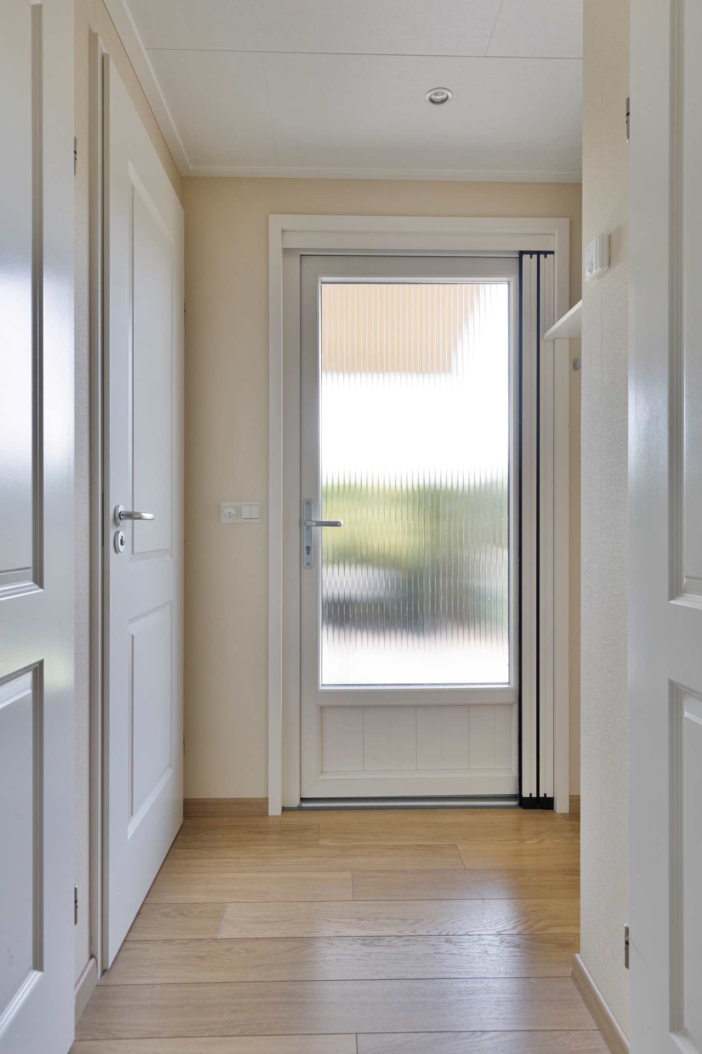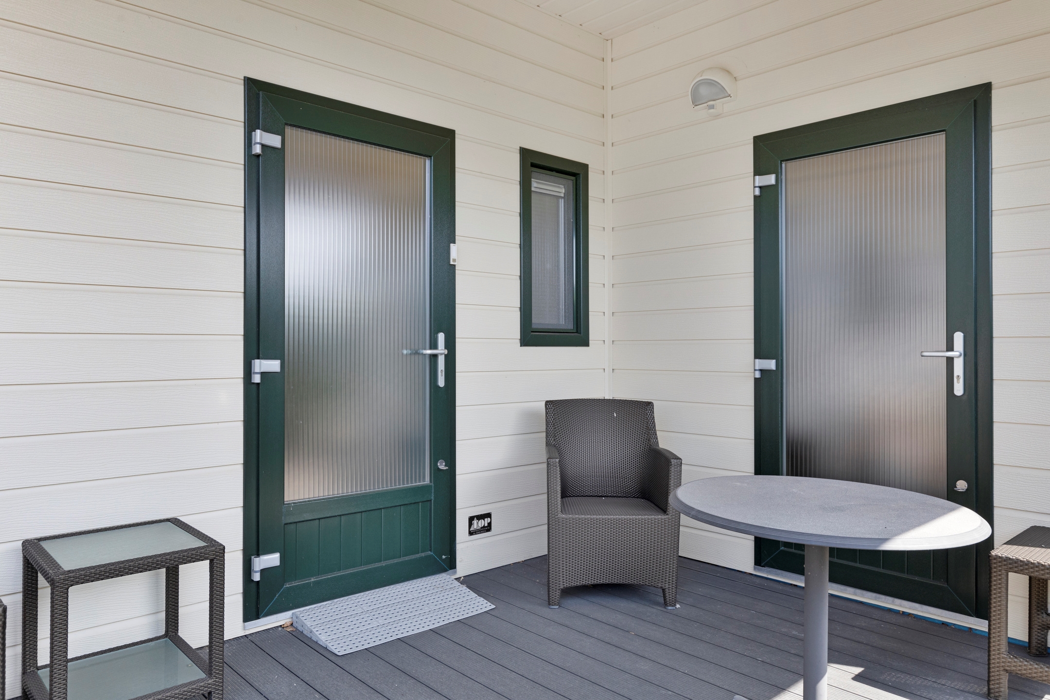 Of je nu een escaperoom zoekt voor in het weekend, een plek voor de schoolvakanties, of juist een retraite wilt in alle seizoenen: deze vrijstaande bungalow biedt alles wat een recreant verlangen kan. De bouwstijl is praktisch en aantrekkelijk; binnen stap je in een lichte woonkamer met open keuken, die uitkijkt op het eigen gazon en het weidse groen daarachter.