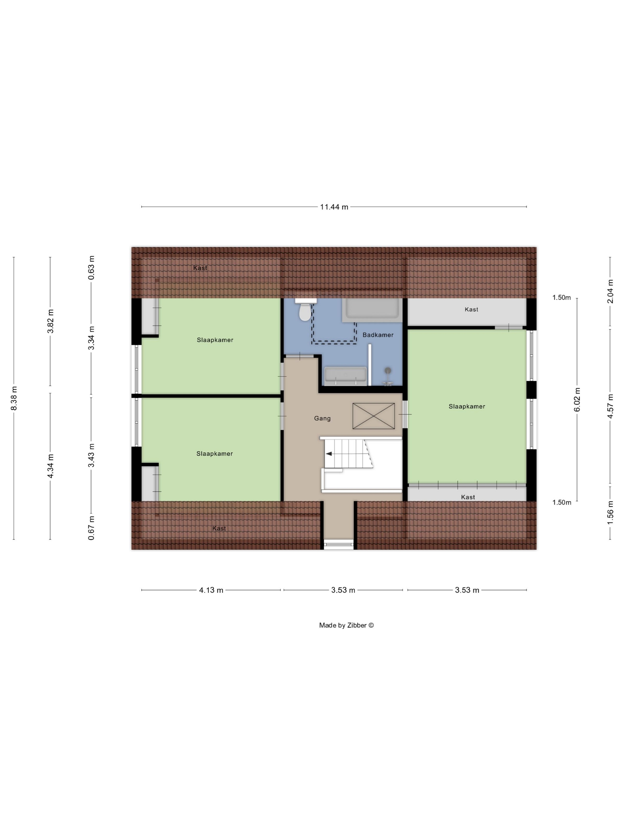Hier bevinden zich drie ruime slaapkamers, allen voorzien van inbouwkasten en rolluiken.