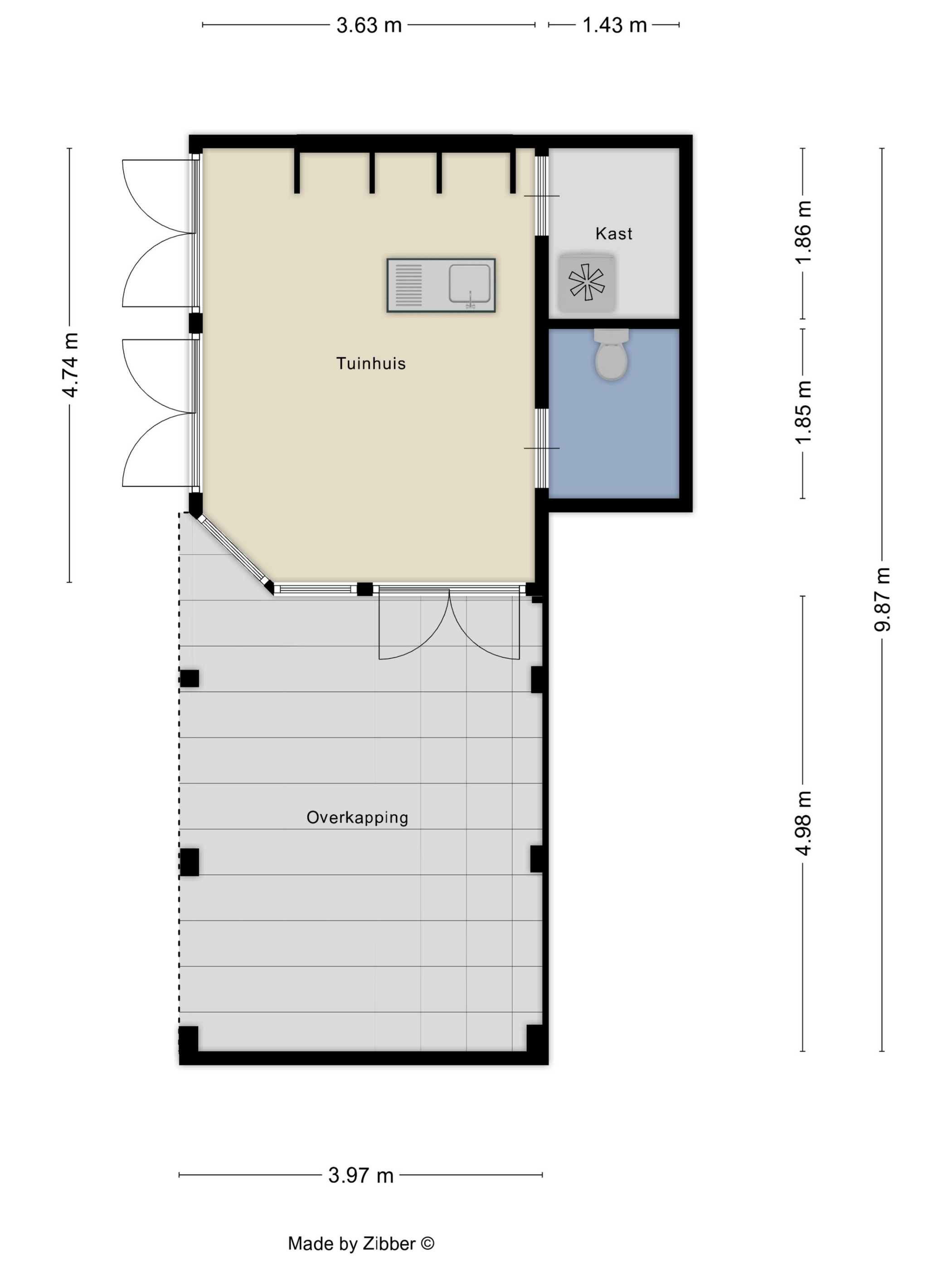 - Bijgebouw met overdekt terras en bar
