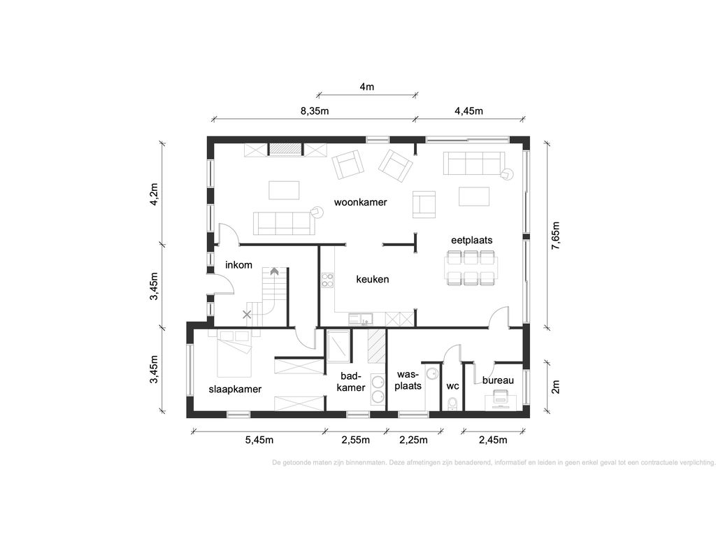 Verder is er een achterinkom met berging, een apart gastentoilet met wastafel en een praktische wasruimte met inbouwkasten en aansluitingen voor was- en droogmachine.