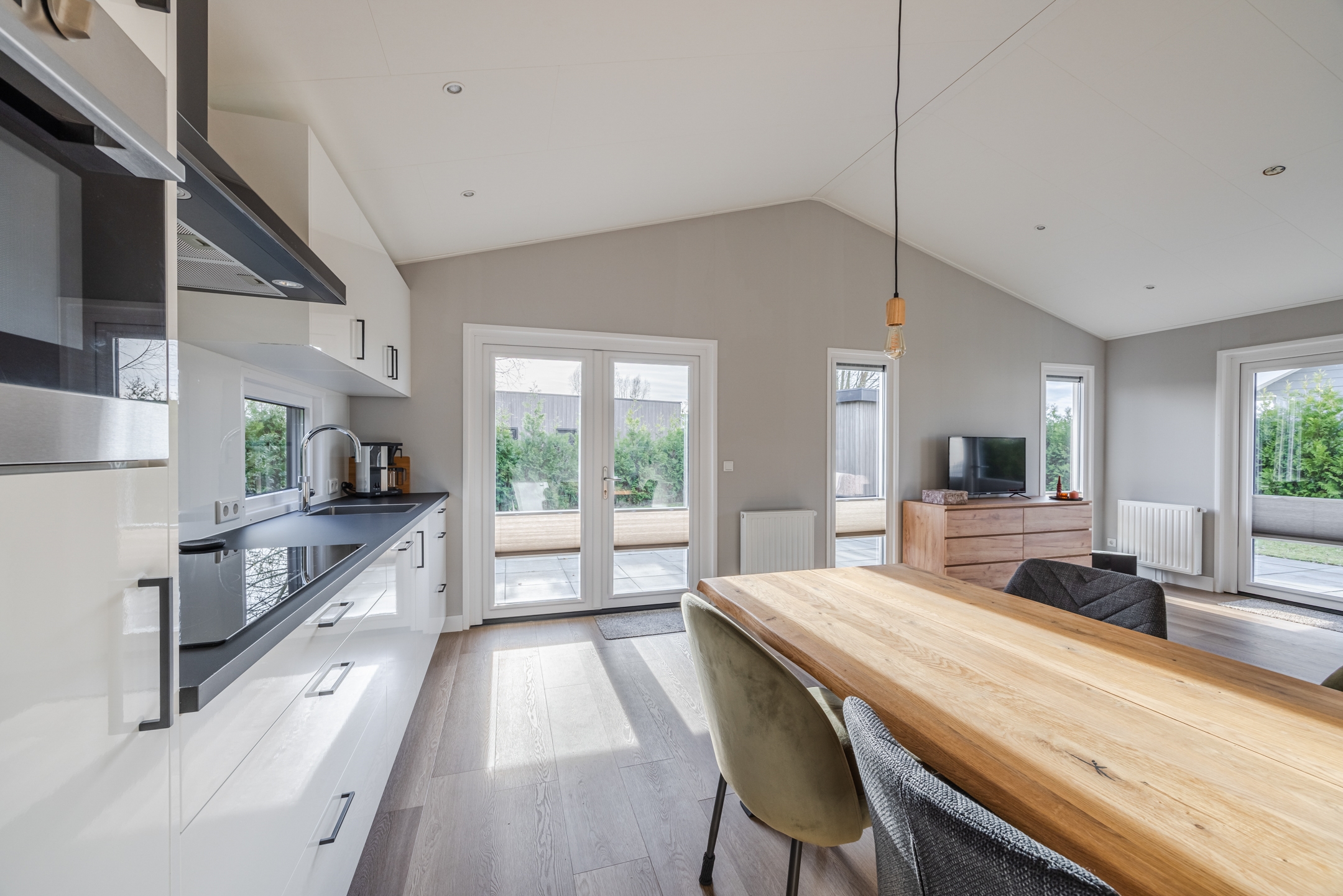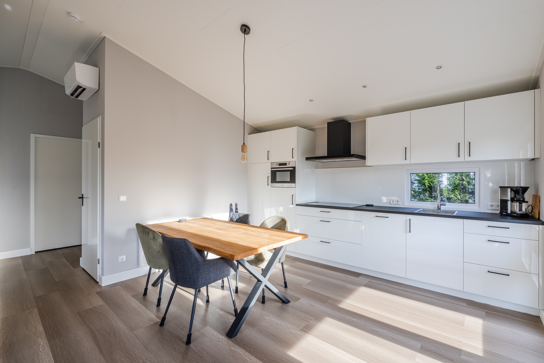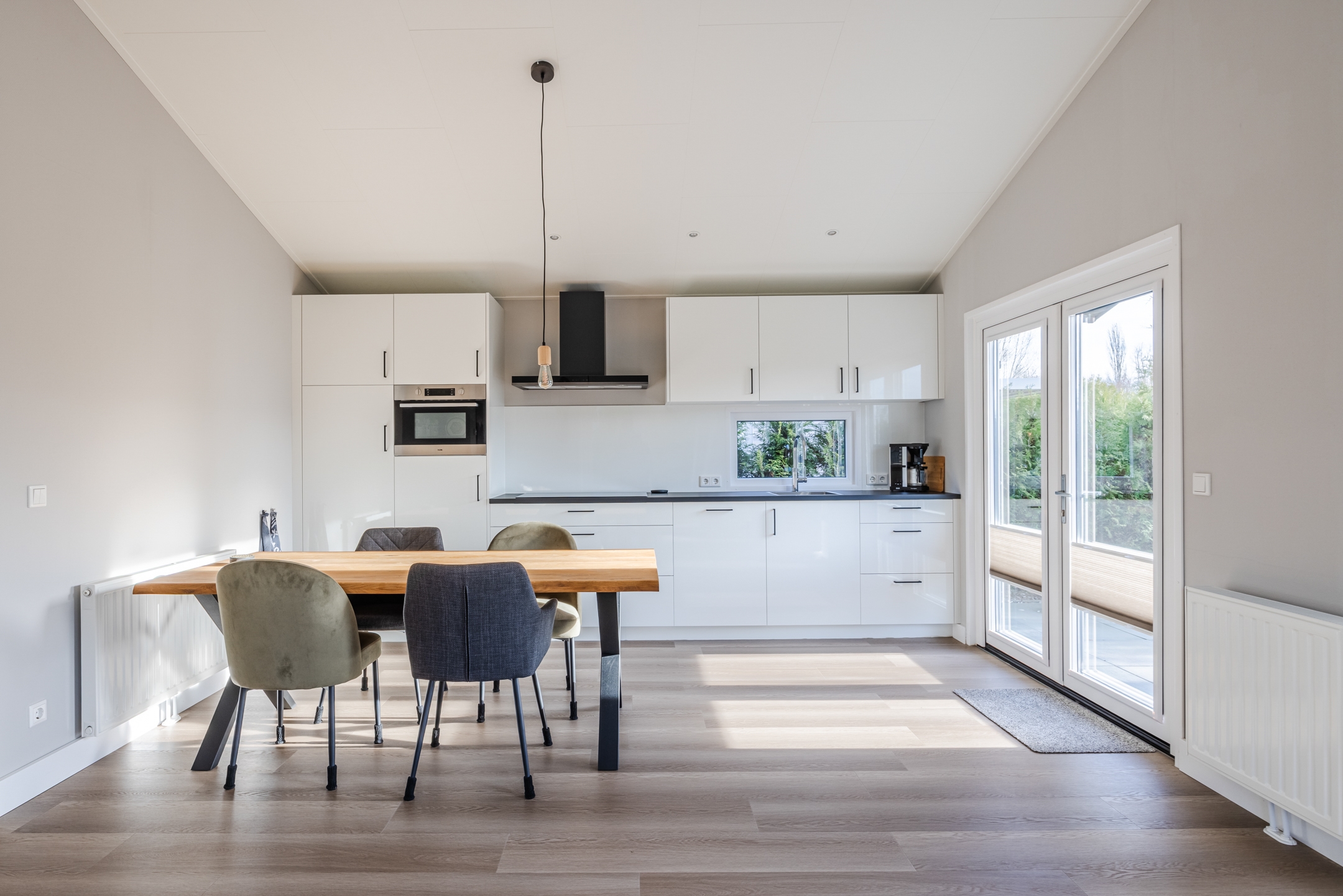 De keuken is strak en eigentijds, voorzien van alle moderne gemakken, zodat je direct aan de slag kunt met koken en gezellig samen eten.