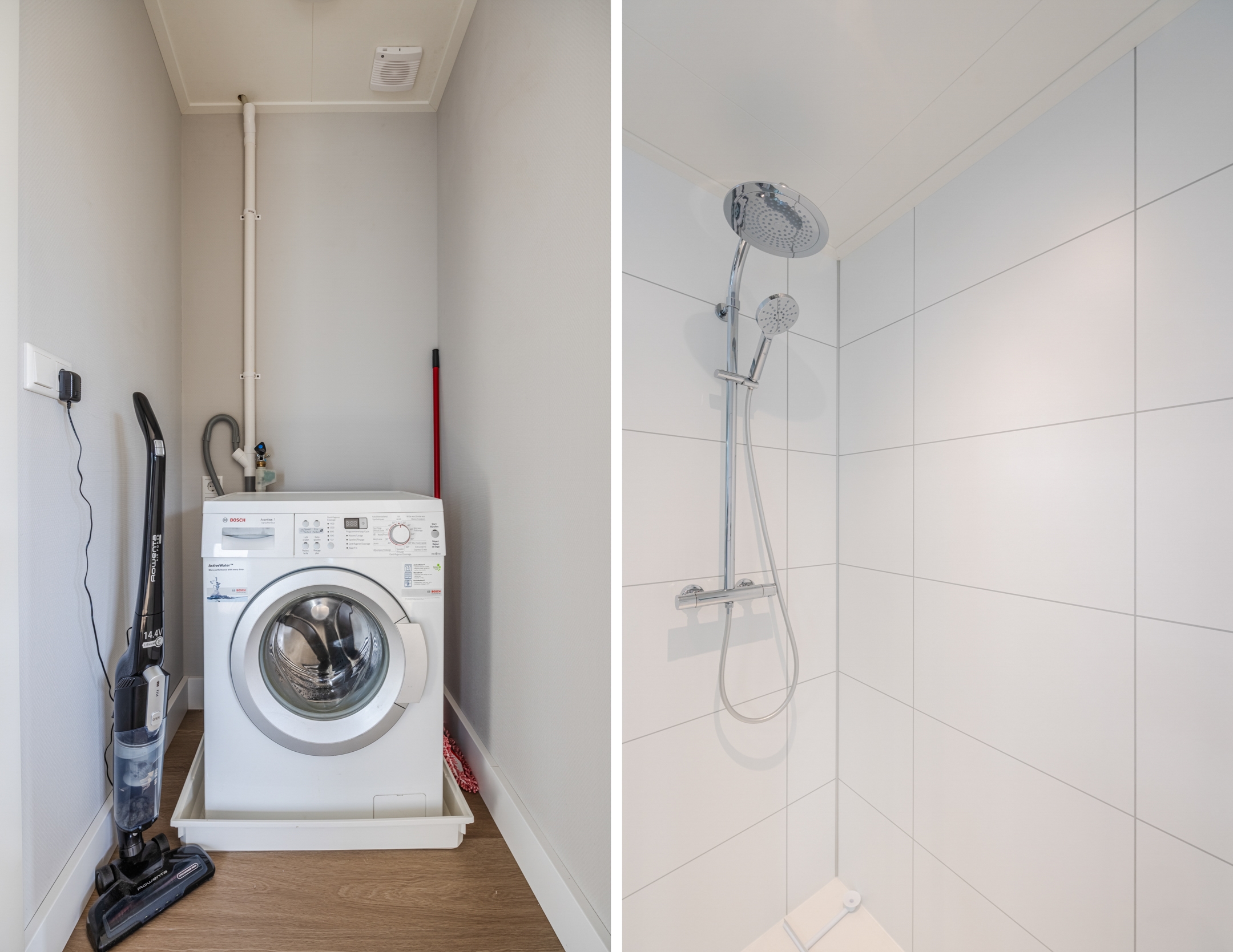 Daarnaast zijn er twee praktische bergingen: één met wasmachine-aansluiting en een tweede berging met de technische installatie, ideaal voor opslag.