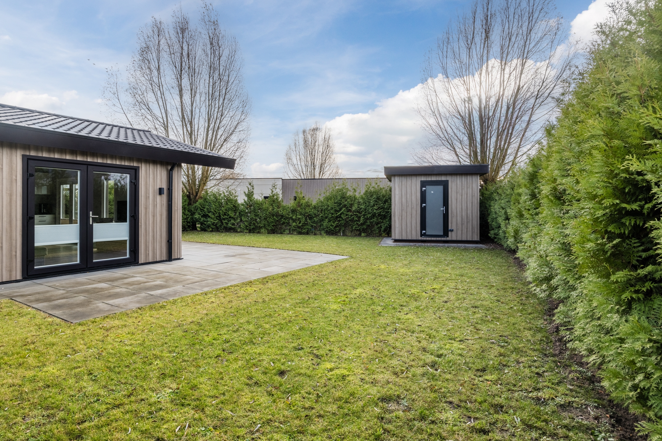 Achter in de tuin bevindt zich een praktische berging, compleet met elektra en water.