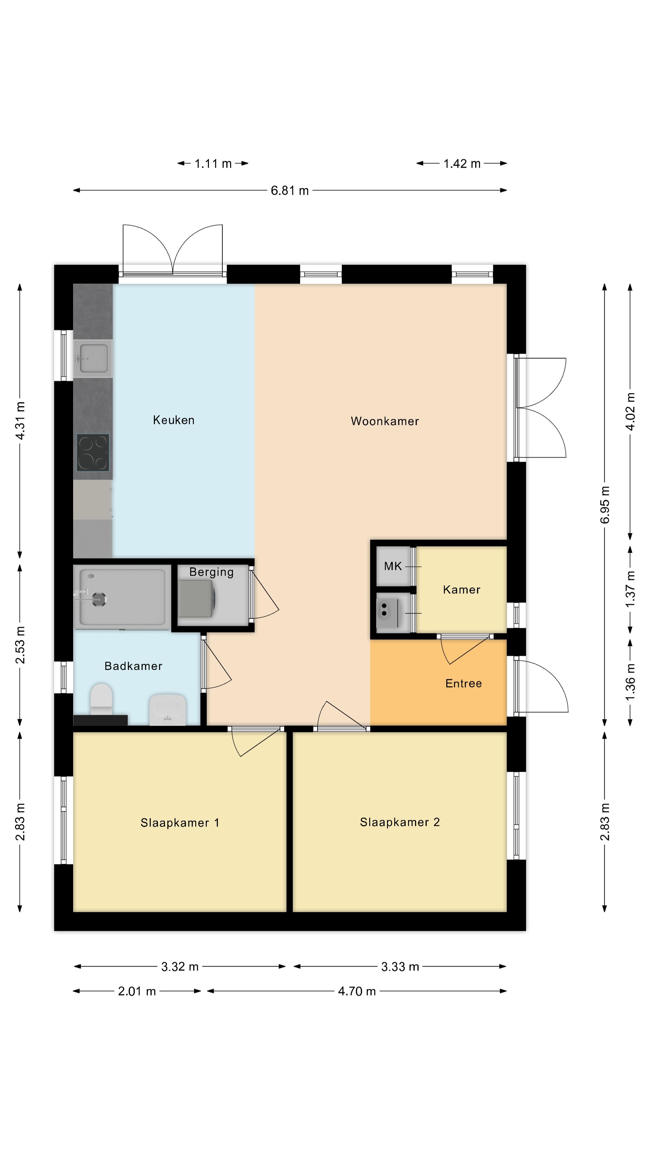 De slaapkamers zijn geheel naar eigen wens in te delen, bijvoorbeeld als logeerkamer, kinderkamer of comfortabele werkruimte aan huis.