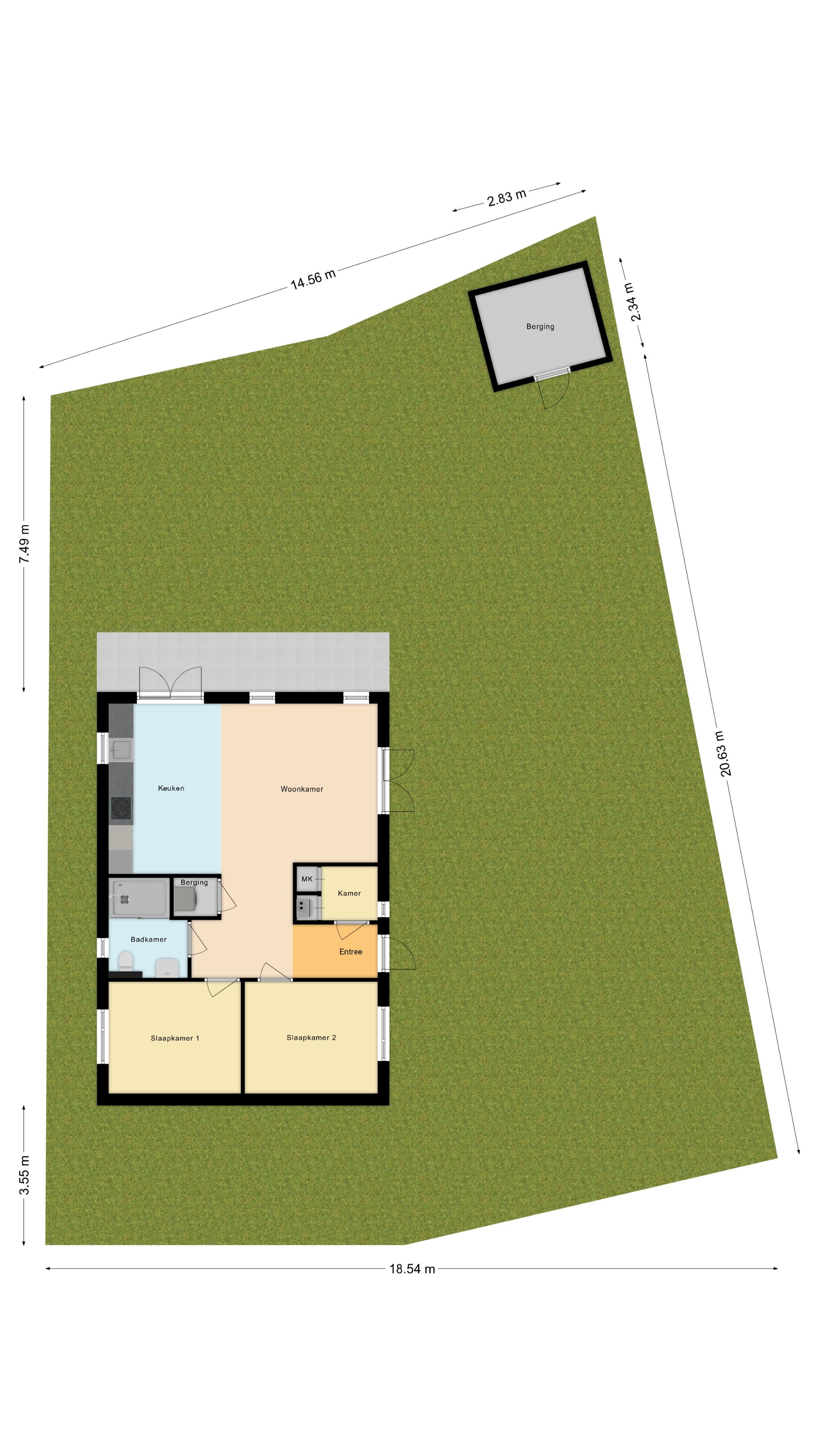 Bij de woning hoort een parkeerplaats geschikt voor een camper.