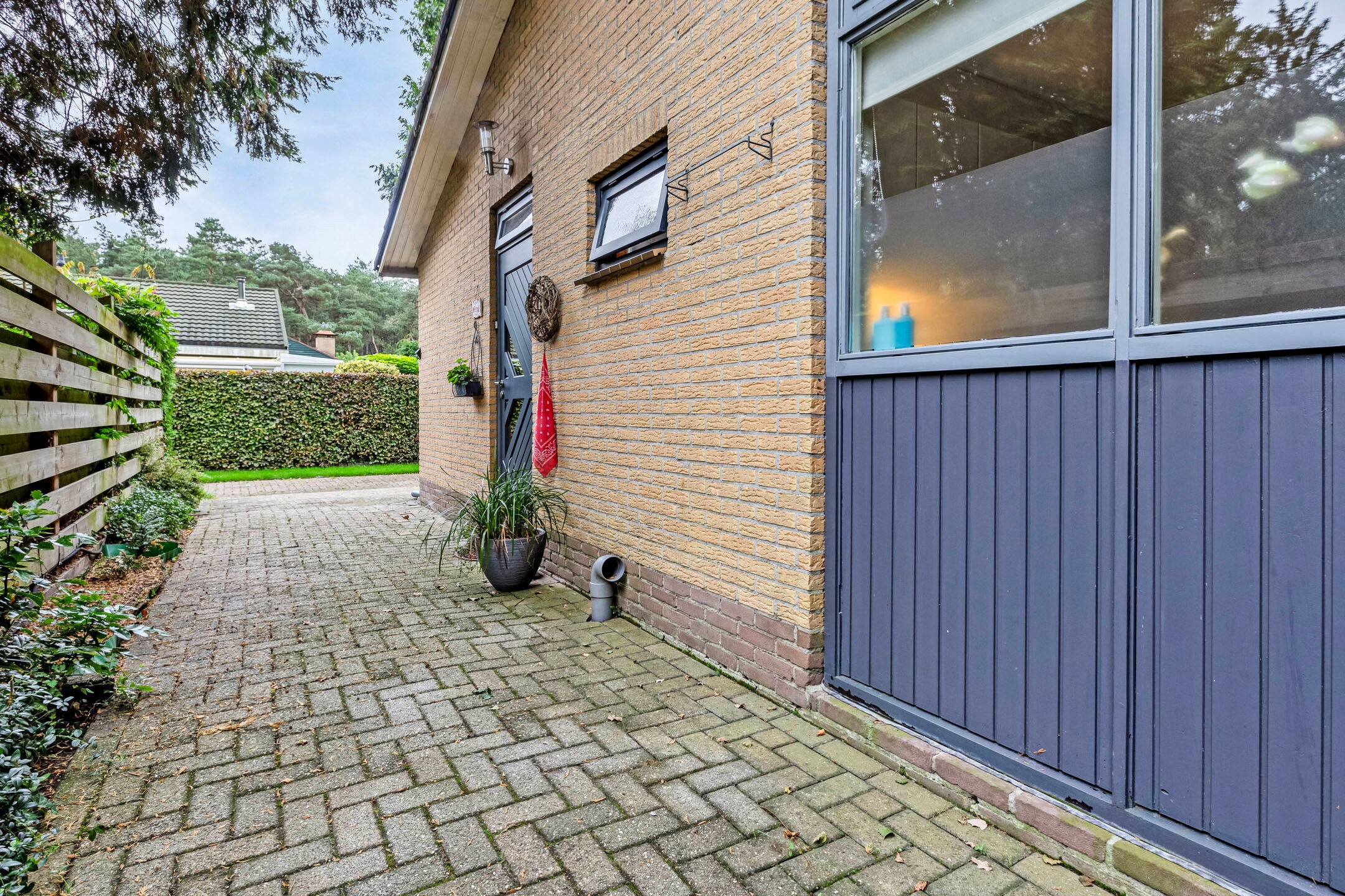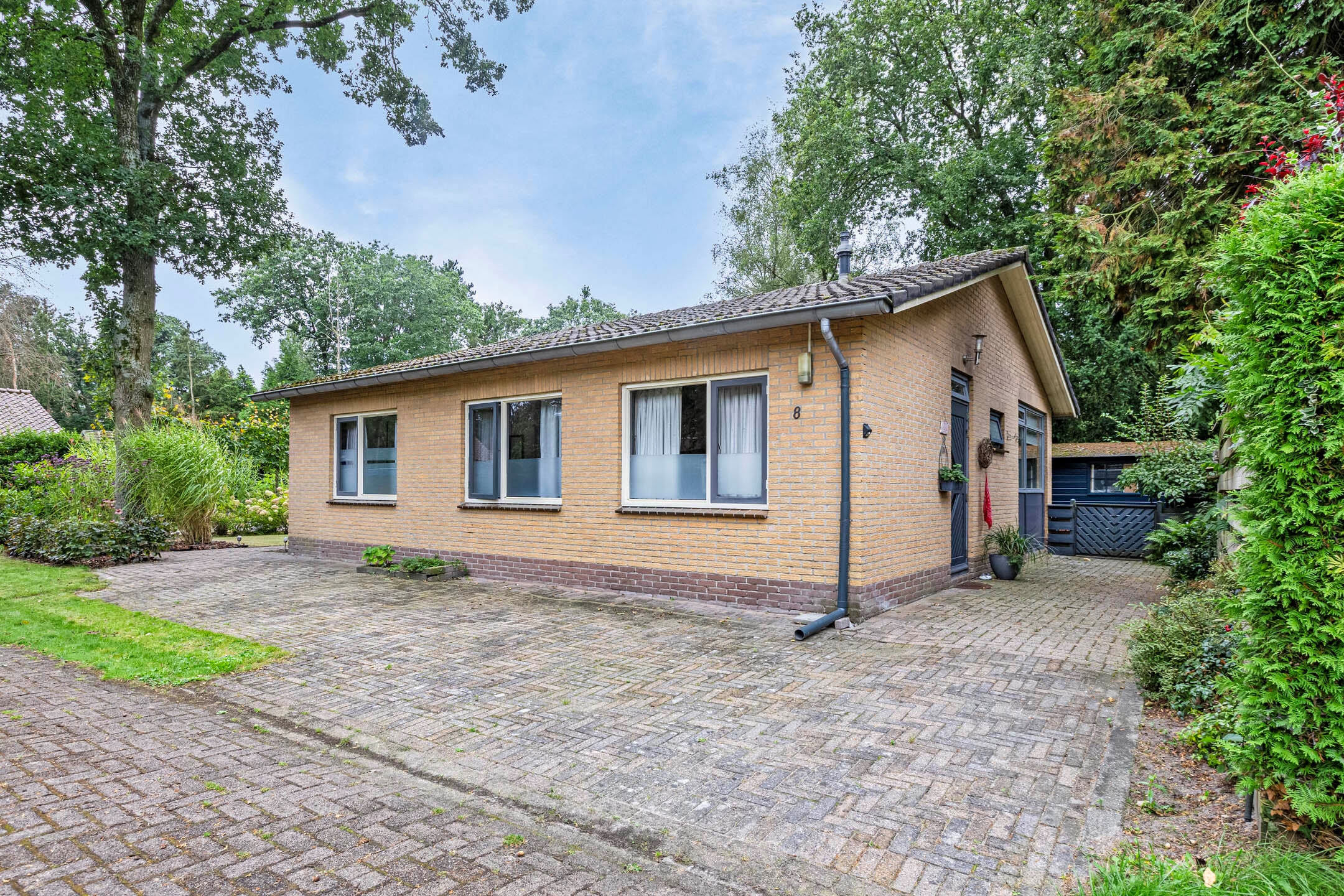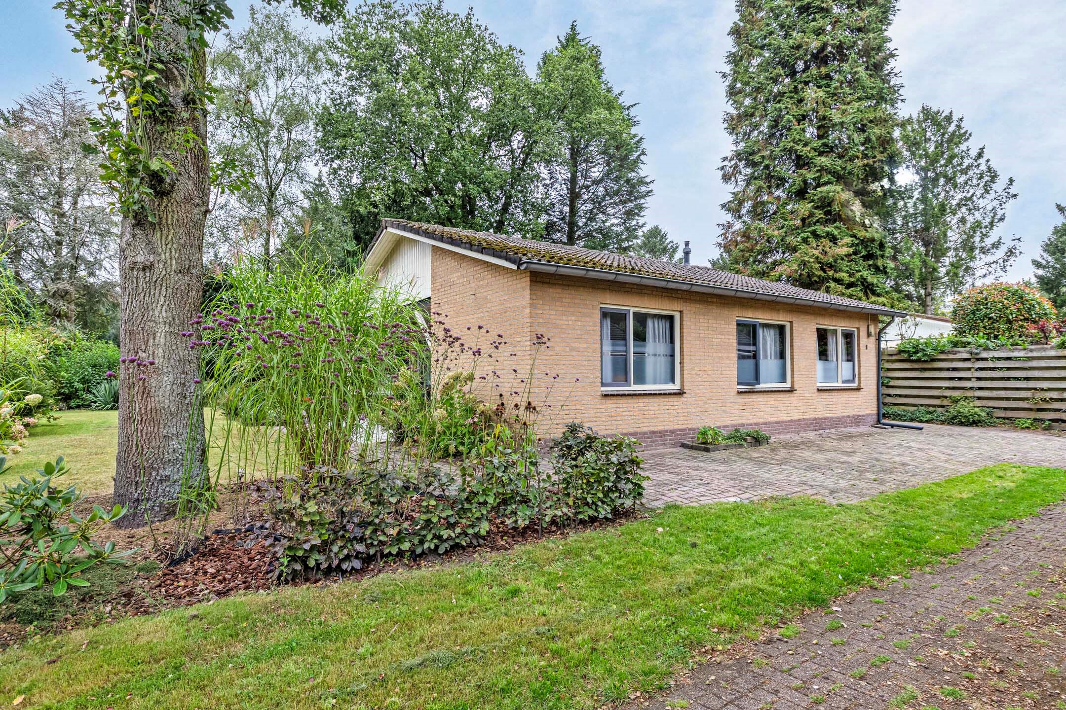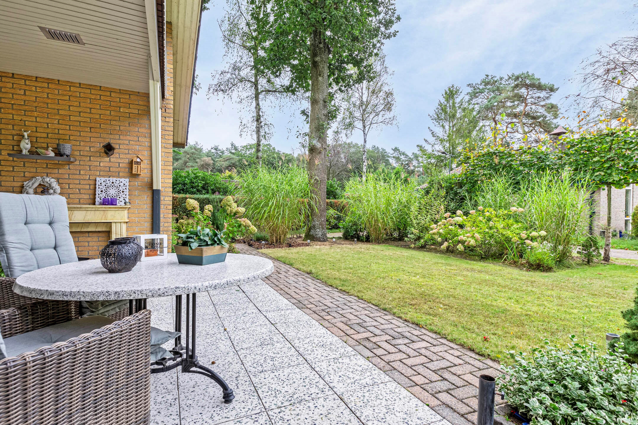 De recreatiewoning staat op een perceel van 569 m² eigen grond. De tuin is gelegen rondom de woning. De privacy biedende tuin is voorzien van gazon, terras, bomen, struiken en plantenborders.