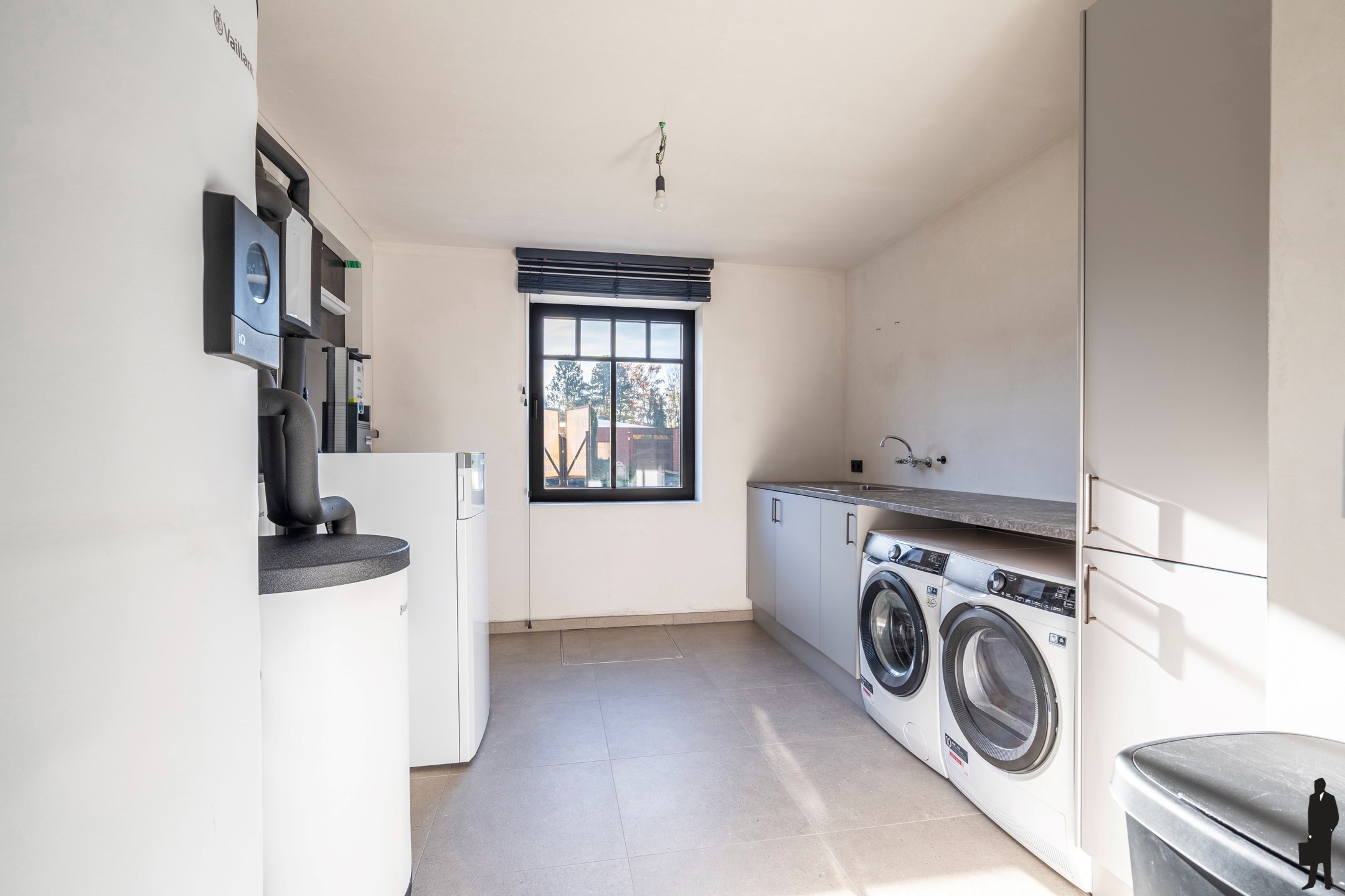 Verder bevinden zich in deze ruimte ook alle sanitair-technische installaties (o.a. warmtepompsysteem) en is er plaats voor een extra diepvriezer of berging.