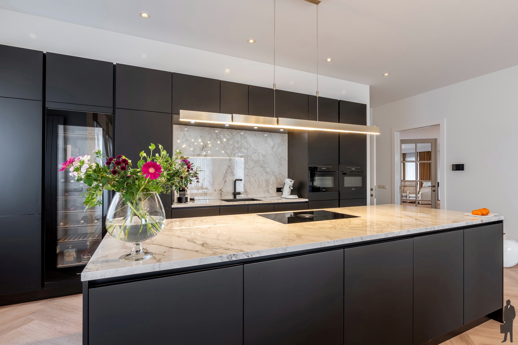 De nieuwe keuken, die ook toegankelijk is via dezelfde gang, is compleet uitgerust voor de culinaire hobbyist met volgende kwaliteitstoestellen (allen Miele): hetelucht- en combi-oven, inductievuur, koelkast, vaatwas en voldoende kastruimte.