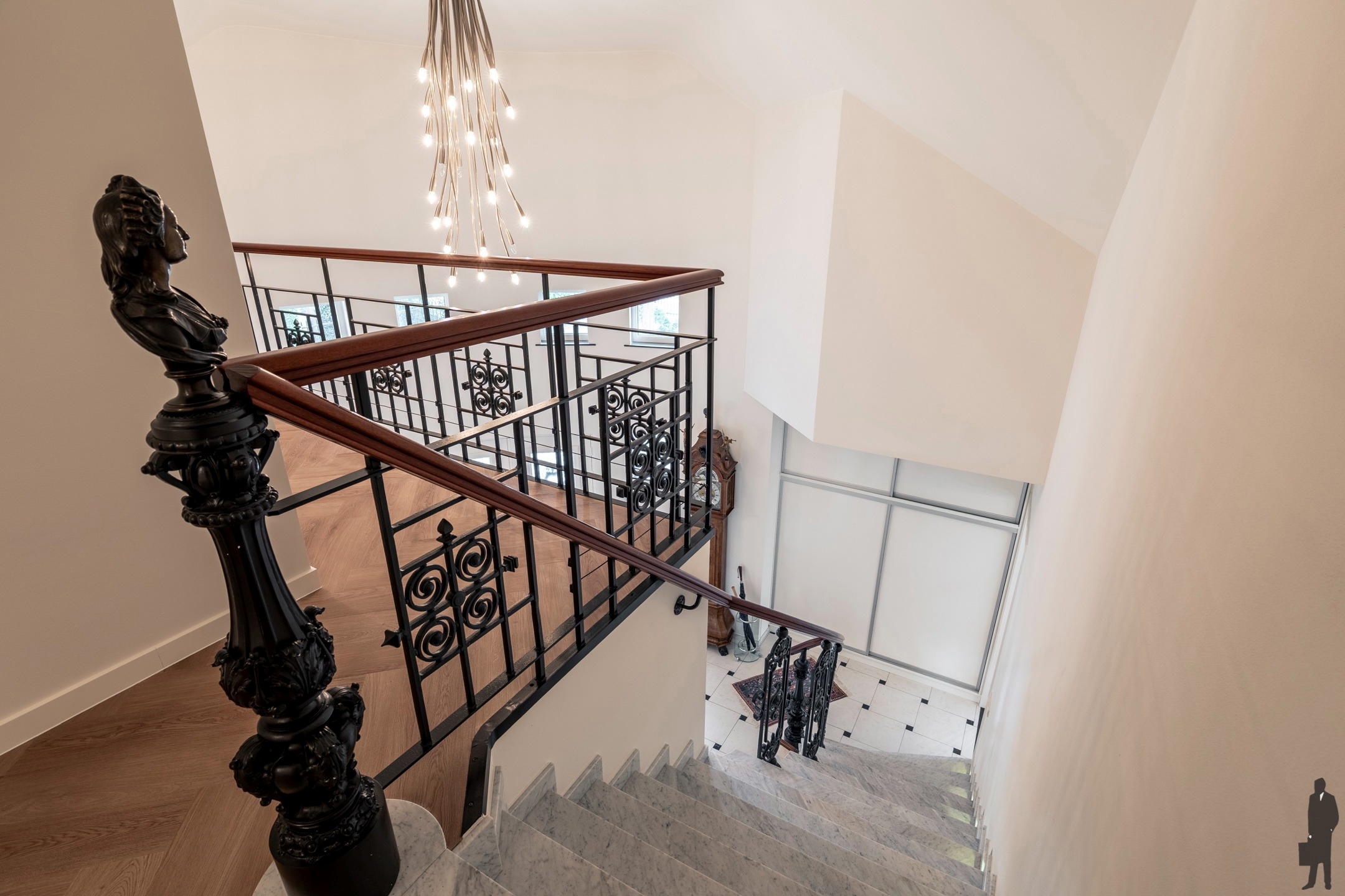 De vaste trap in de inkomhal brengt u naar de eerste verdieping.