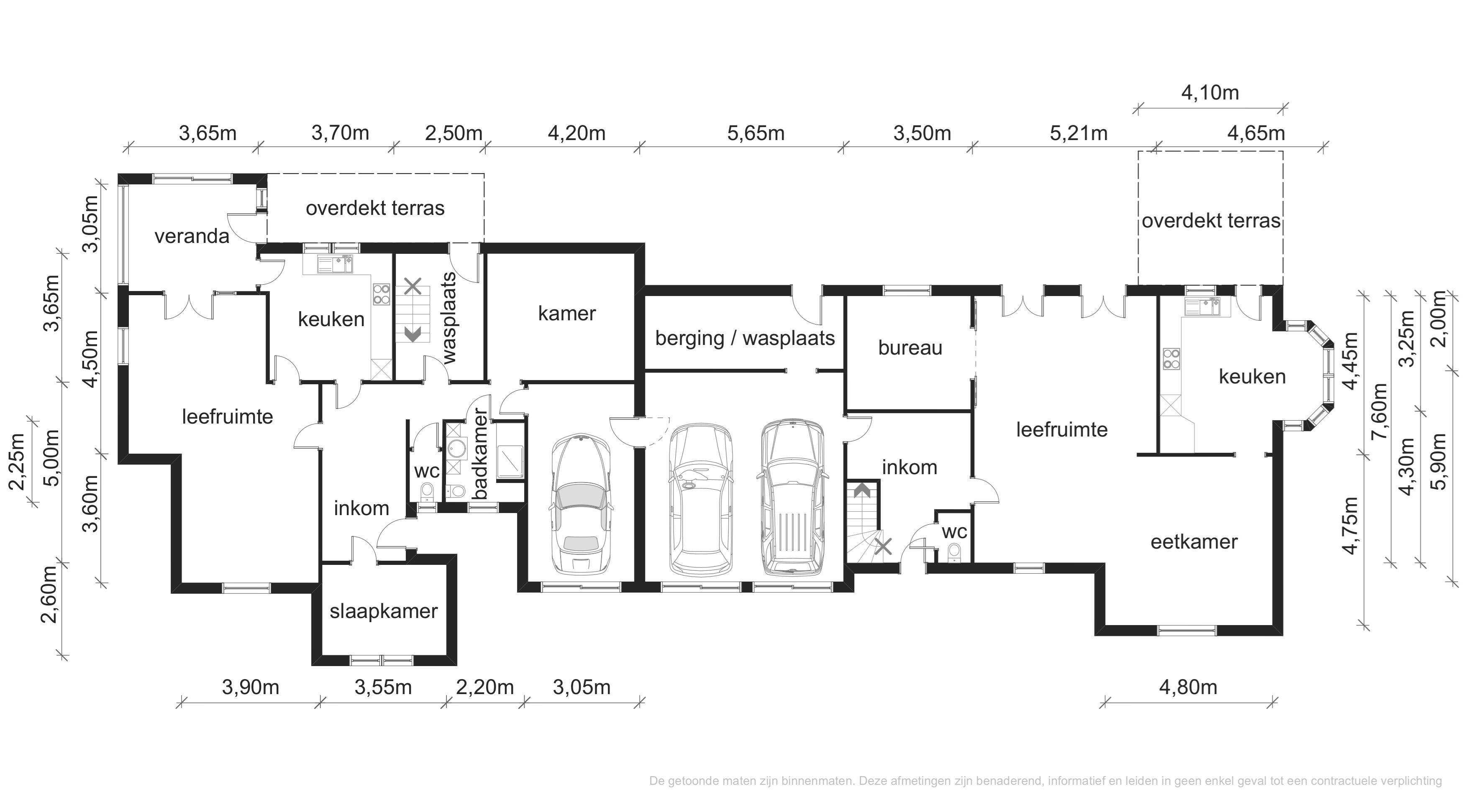 Bovendien is bij het ontwerp rekening gehouden met de eventuele wens om beide vleugels eenvoudig met elkaar te verbinden tot één riante paleisvilla.