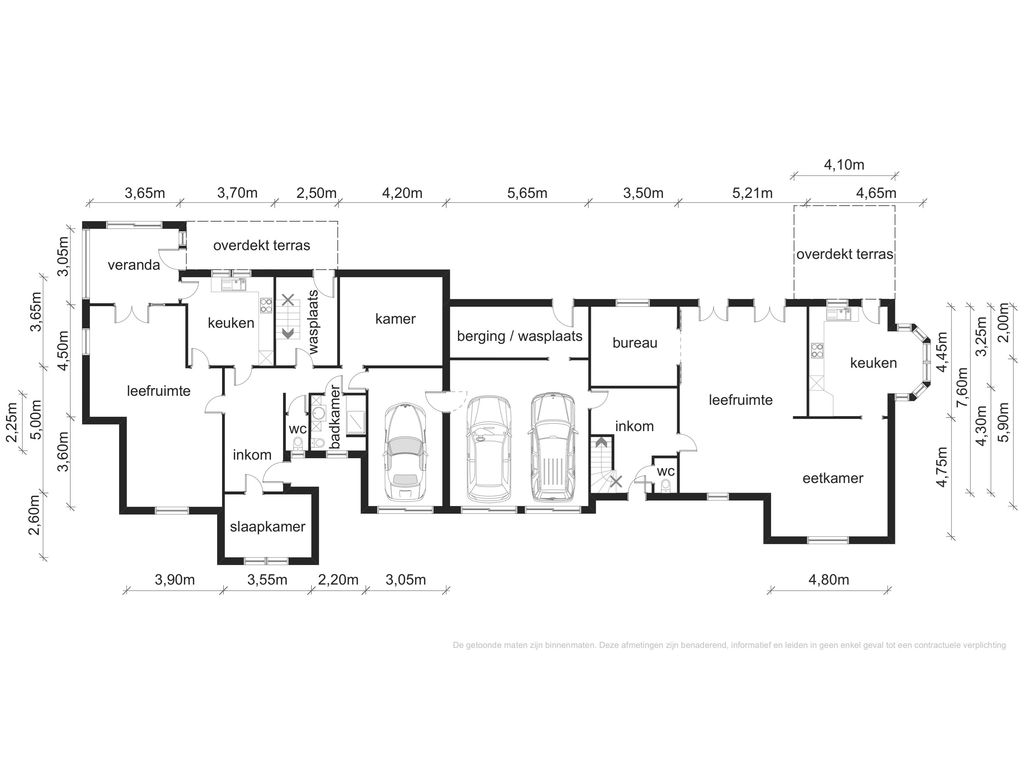 Beide vleugels beschikken over ruime (overdekte) terrassen.