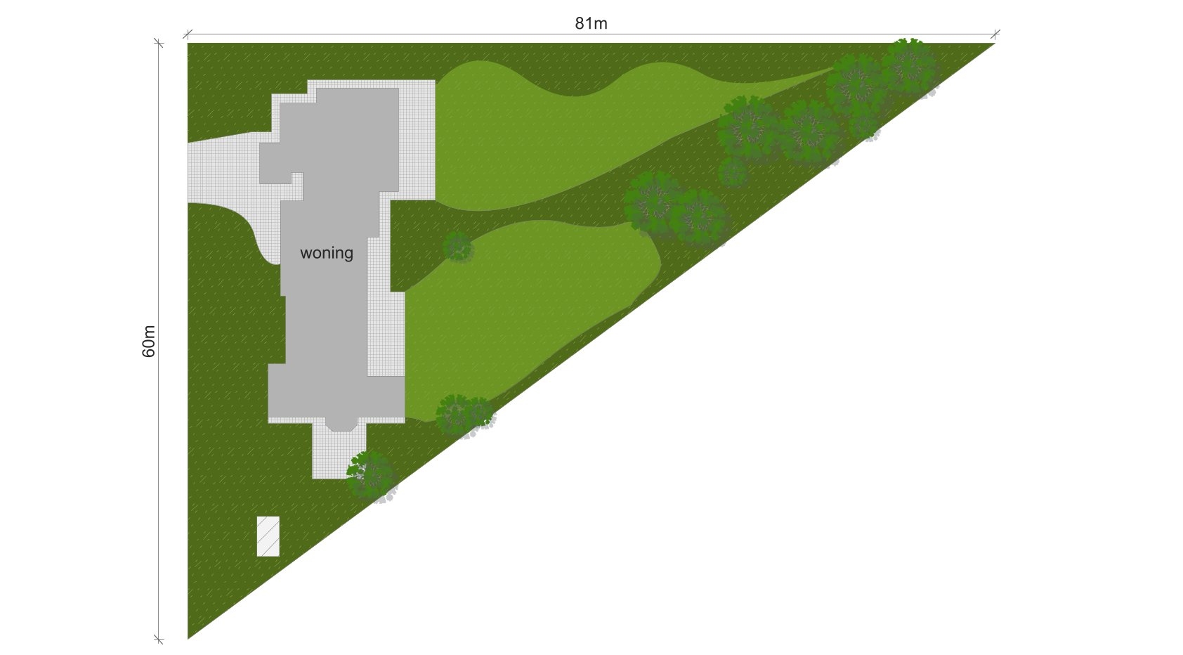 - Ca. 60m straatbreedte en ruim 80m diepte