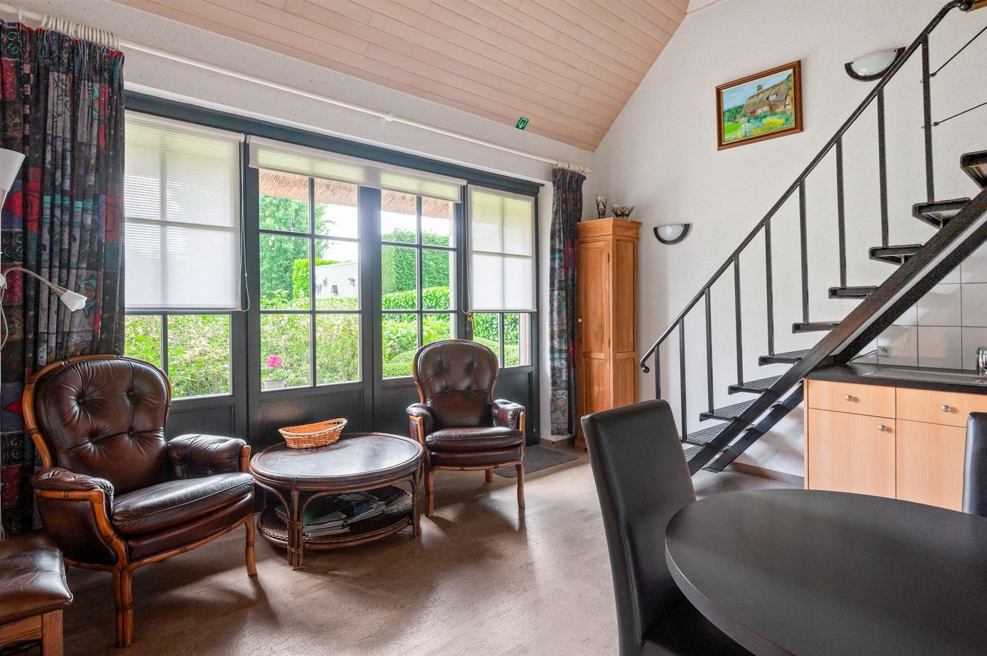 Een bijzondere troef is de aparte studio, voorzien van een kitchenette, eigen toilet en een slaapkamer die bereikbaar is via een trap.