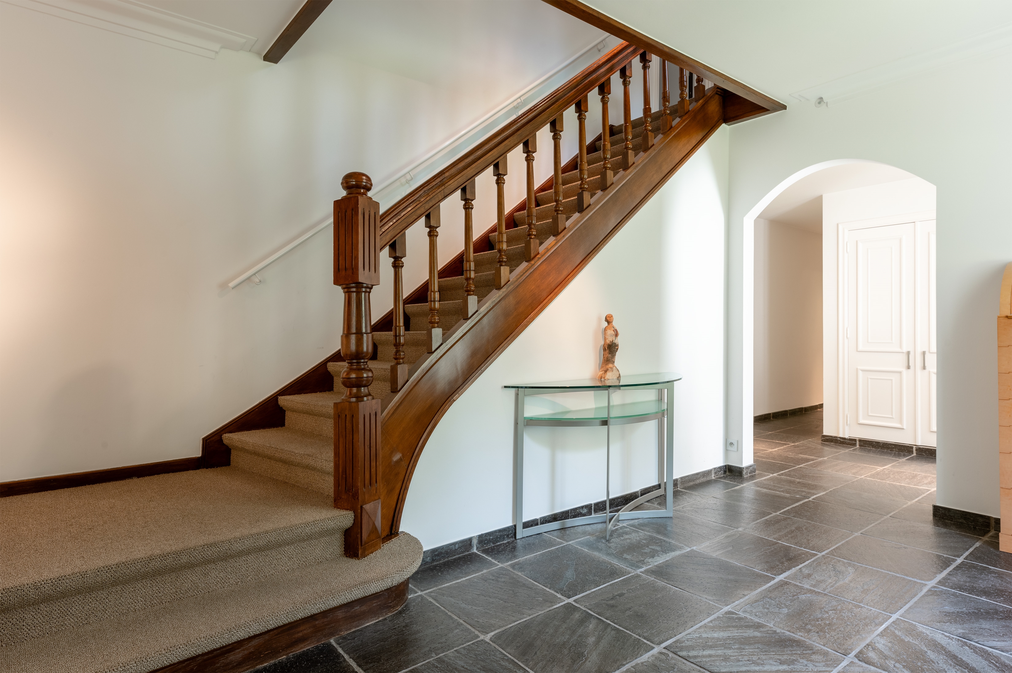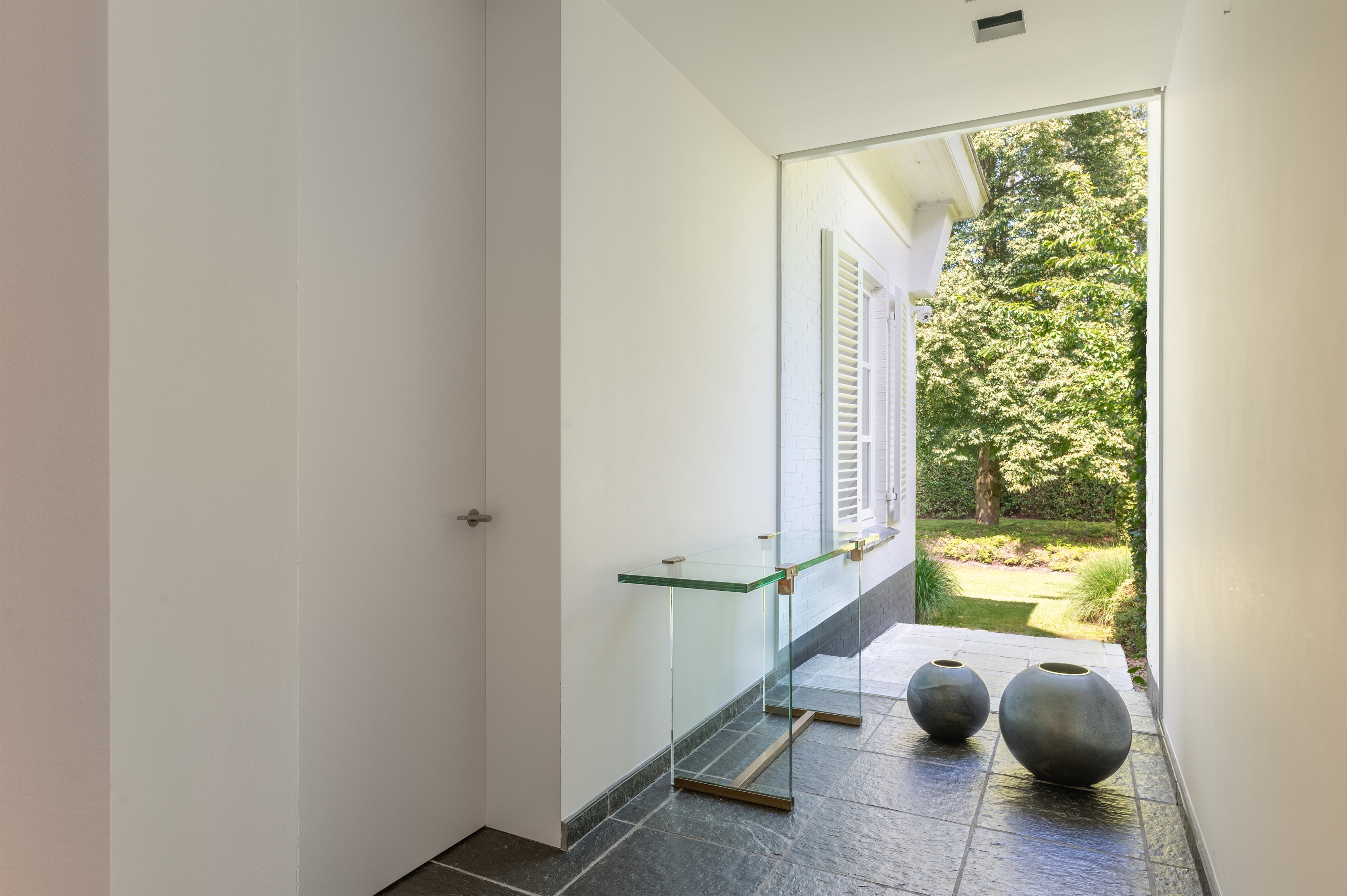 - Een inkomhal (ca. 13 m²) met ingemaakte vestiaire en gastentoilet met separate handenwasser