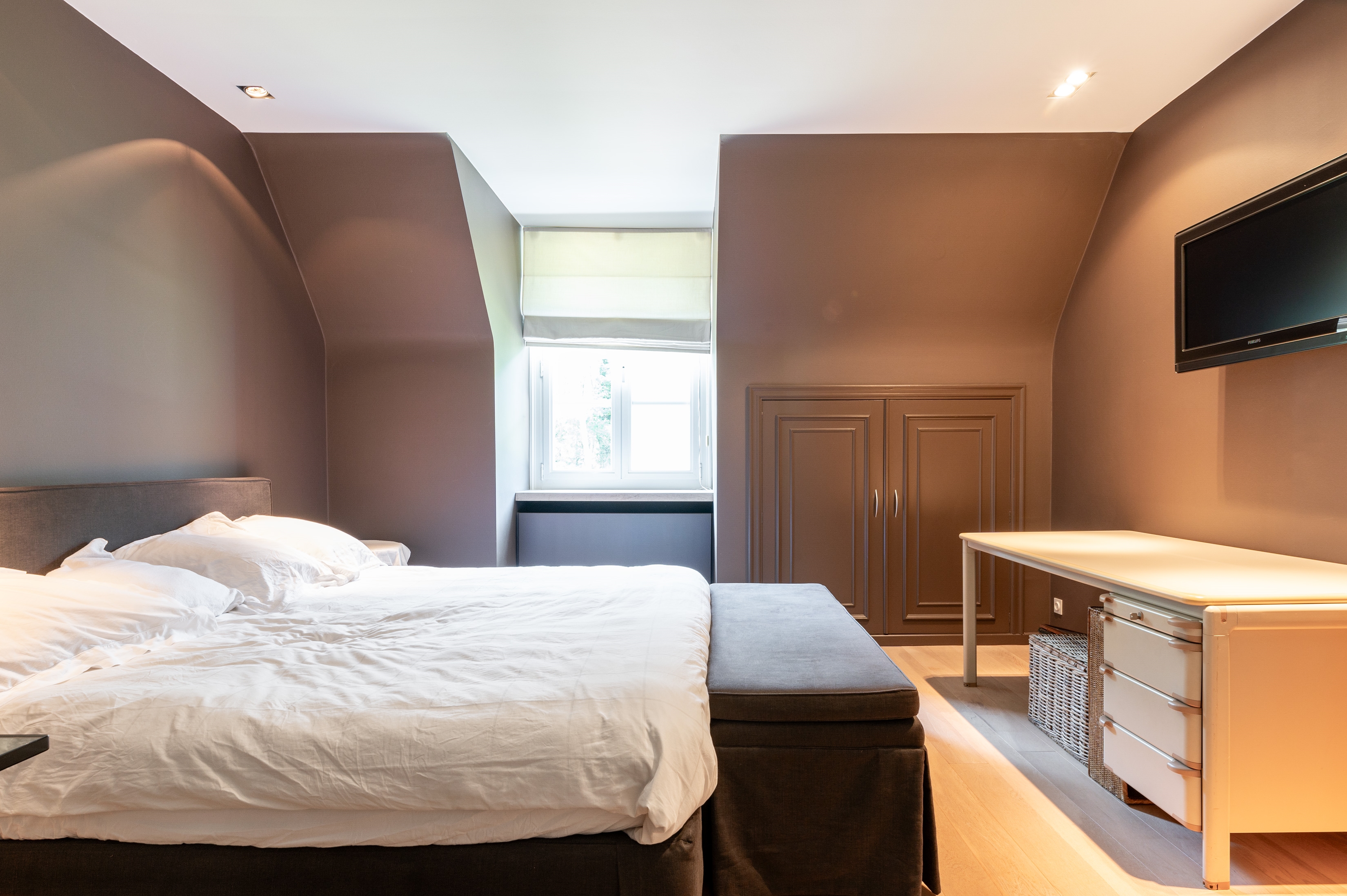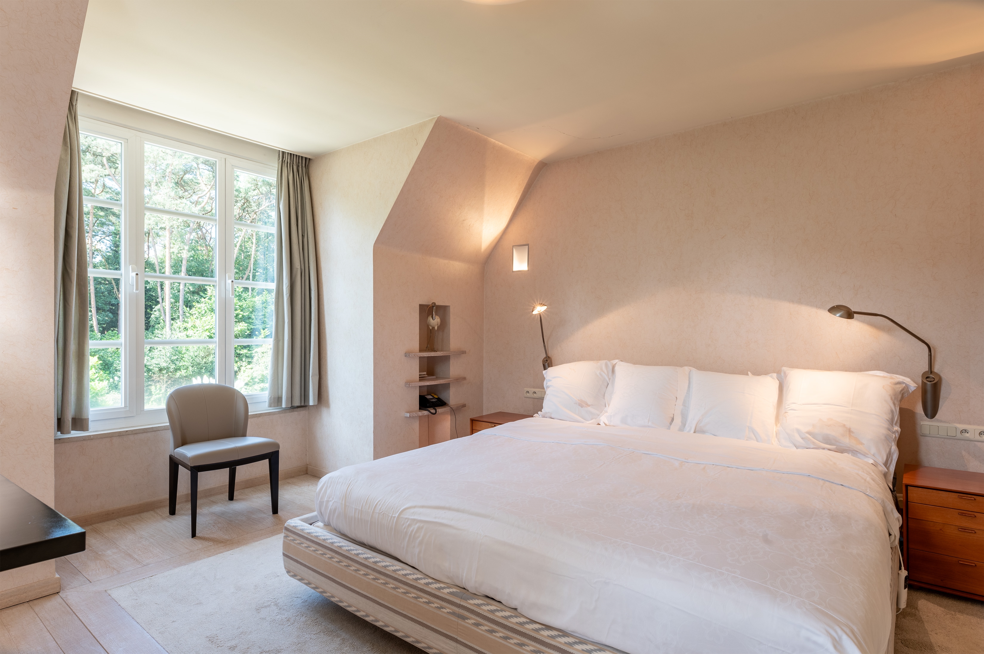 - Een hoofdslaapkamer (ca. 45 m²) met ingemaakte dressing en ruim terras (ca. 19 m²) op bancarai en zicht op de tuin