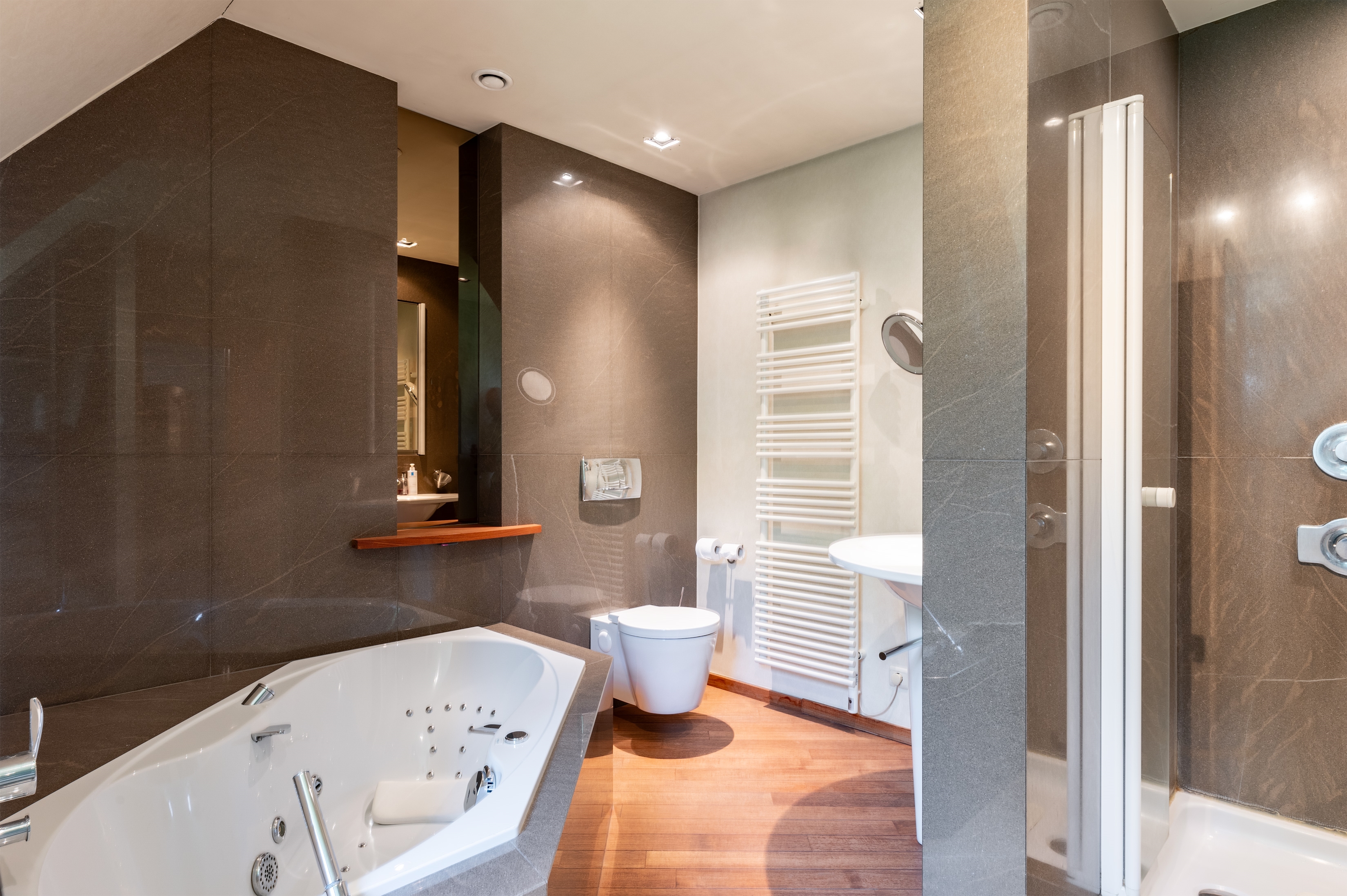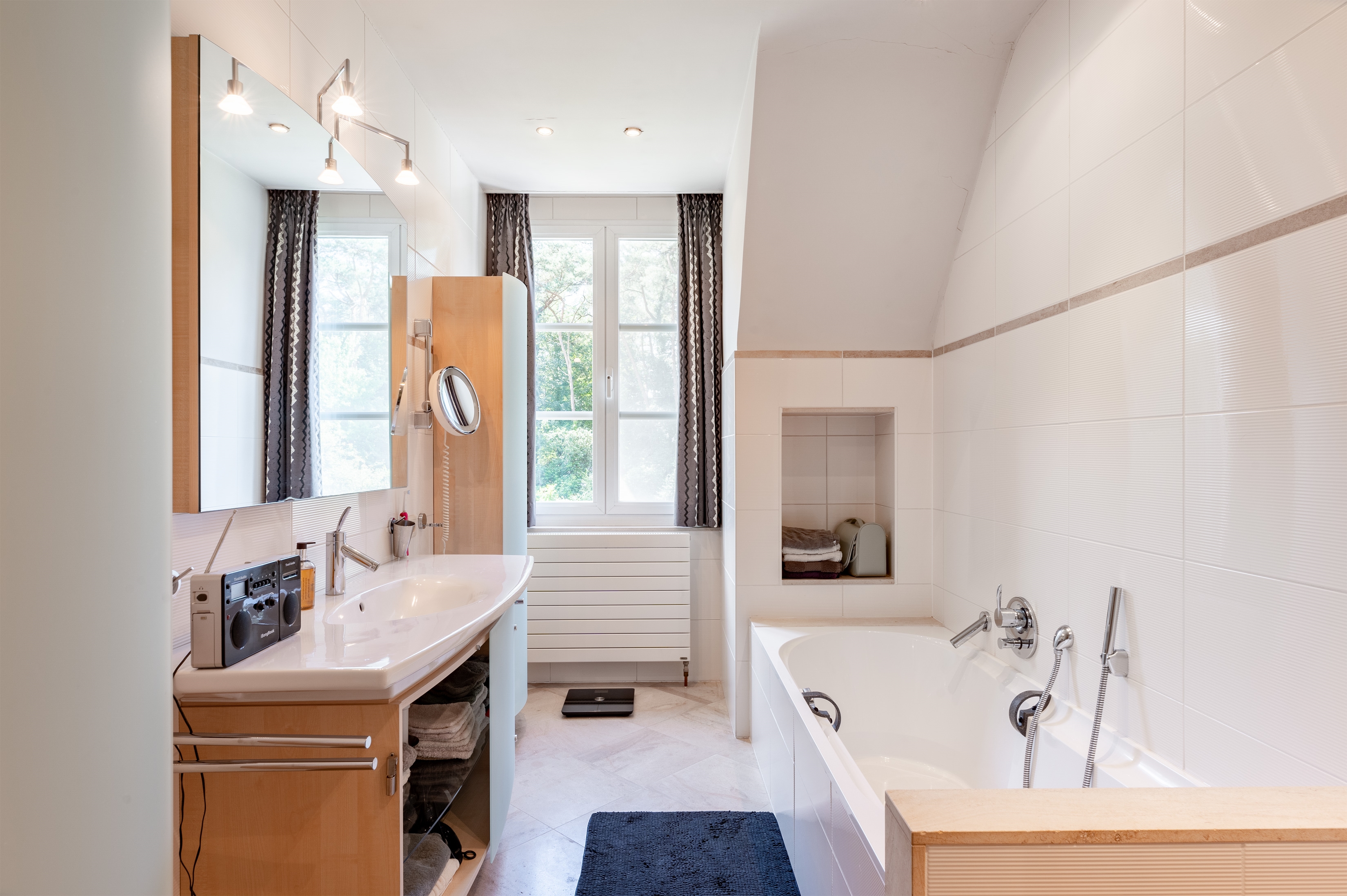 - Een tweede badkamer (ca. 10 m²) met ligbad/jacuzzi, douche, lavabo en toilet