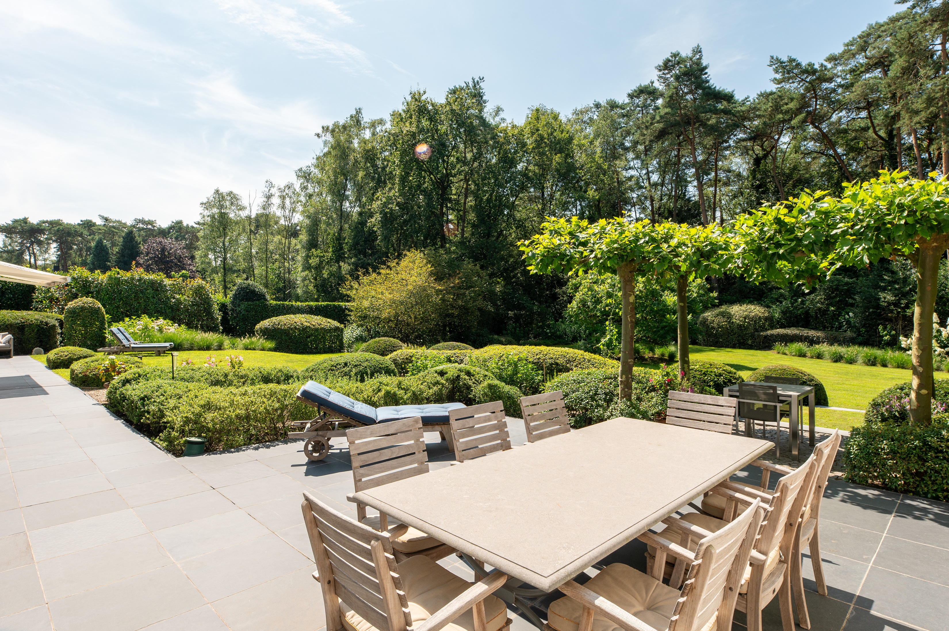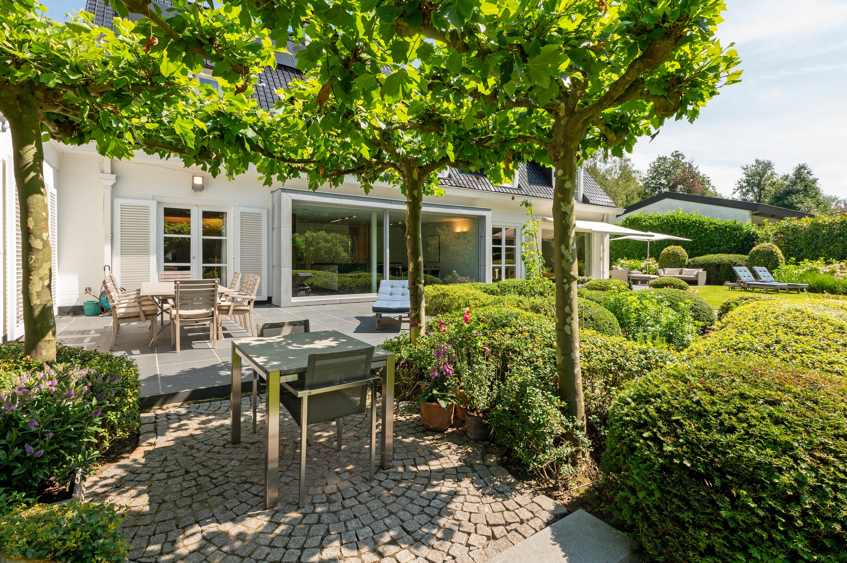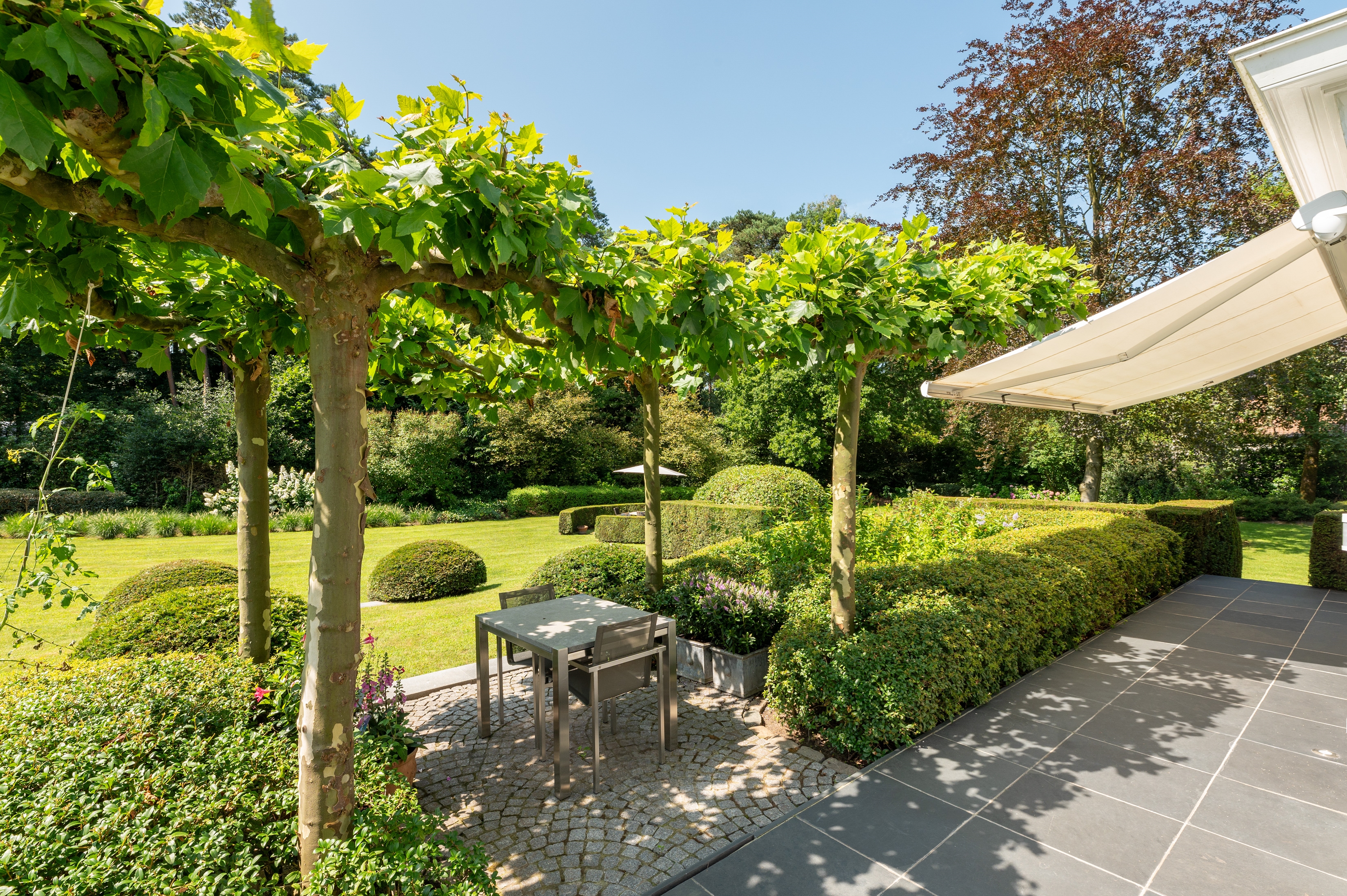 - Een prachtige omheinde, perfect onderhouden tuin met meerdere terrassen en volwassen bomenbestand