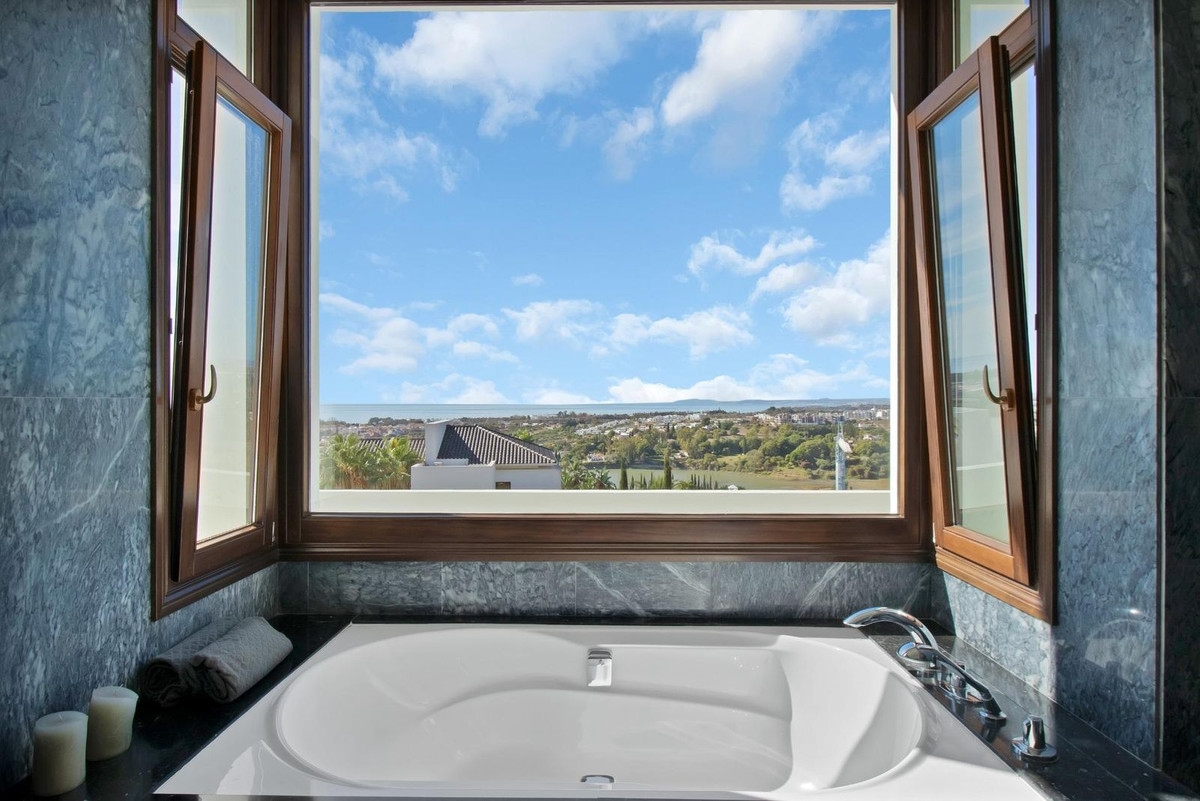 Geniet van de luxe van het (verwarmde) zwembad, dat je het hele jaar door kunt gebruiken terwijl je geniet van het prachtige panoramische uitzicht op de zee, Benahavis en de golfbaan.